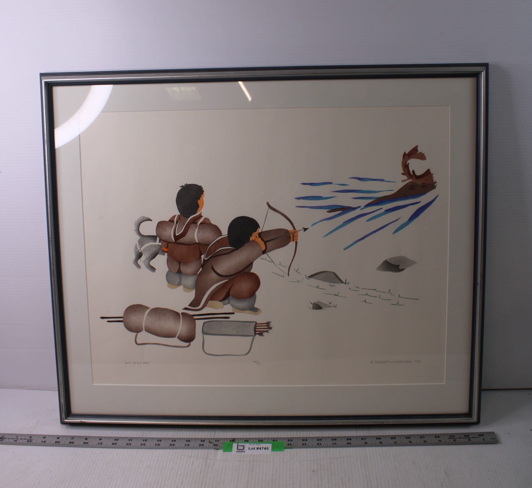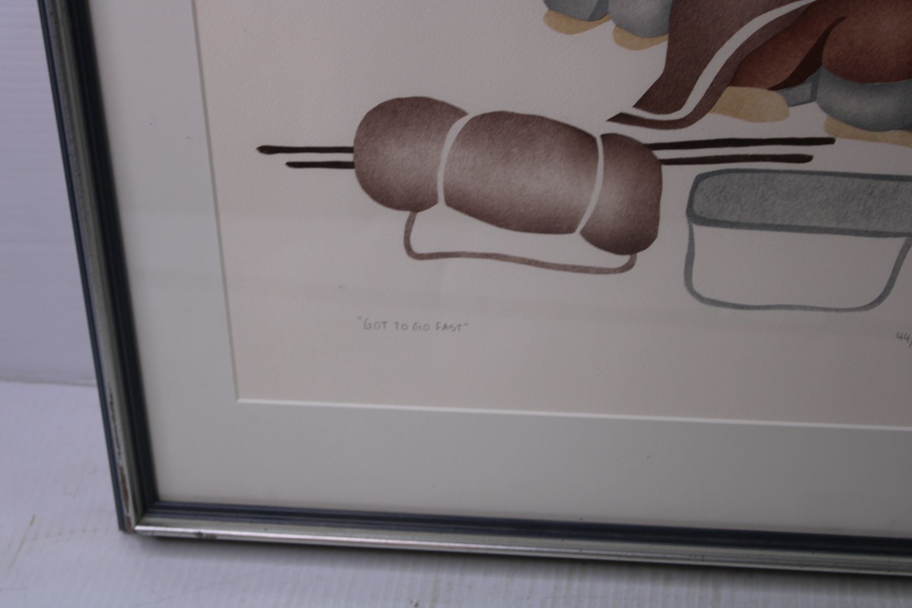 *Framed Indigenous Art, "Got to Go Fast, 44/50," by M. Okheena/H. Klengeneberg 1989 - Outside Measurements 29" x 25", Inside Measurements 19" x 24 1/2"