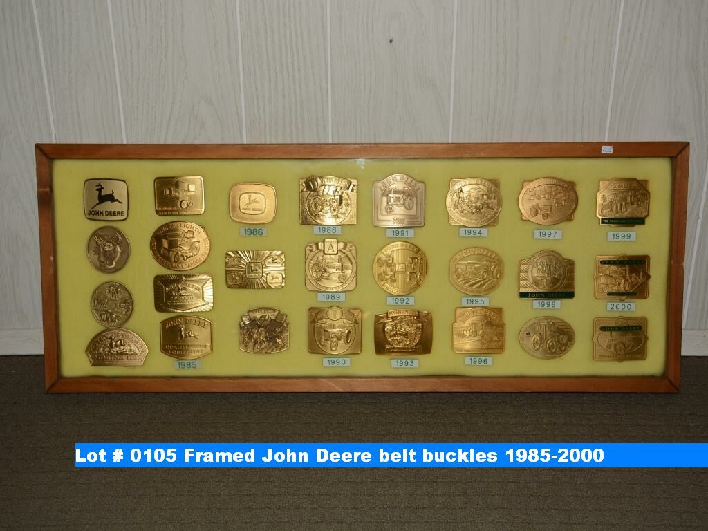 Framed John Deere belt buckles 1985-2000
