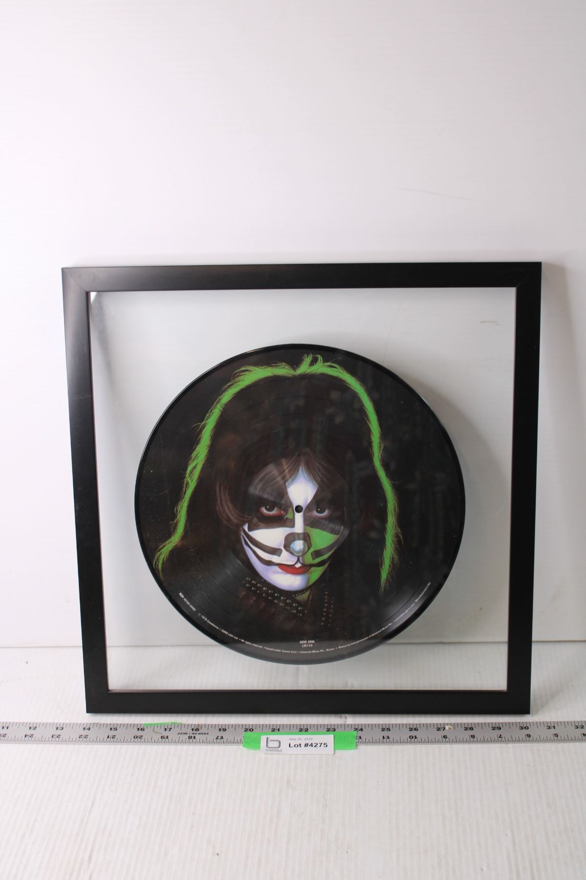 Framed "KISS," Band Vinyl Record Art of Peter Criss - 16 1/2" x 16 1/2"