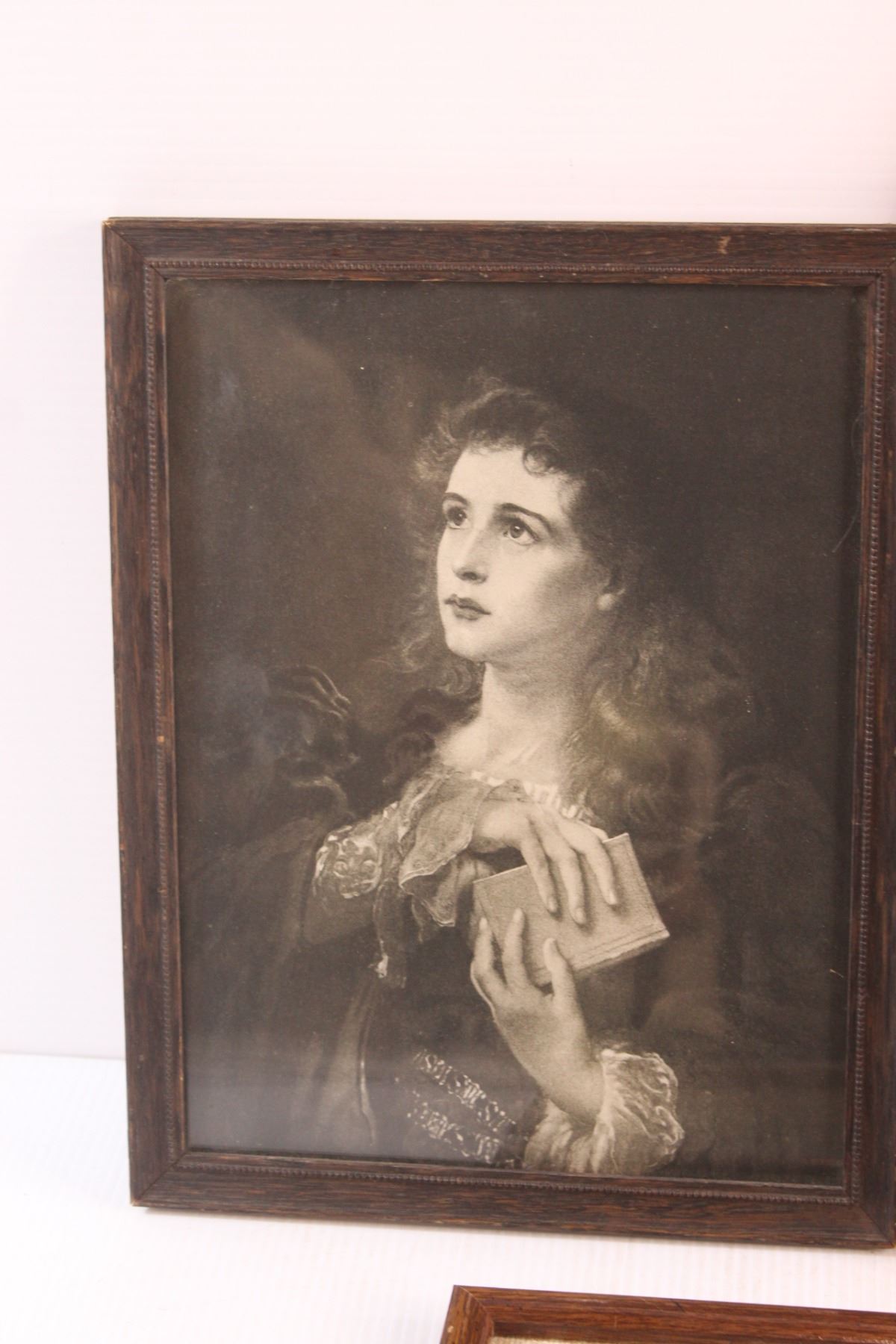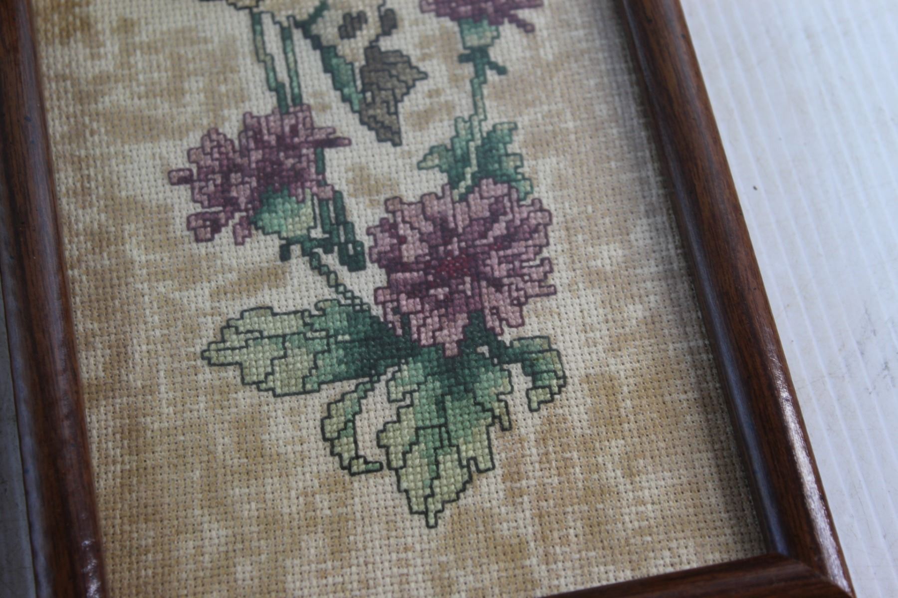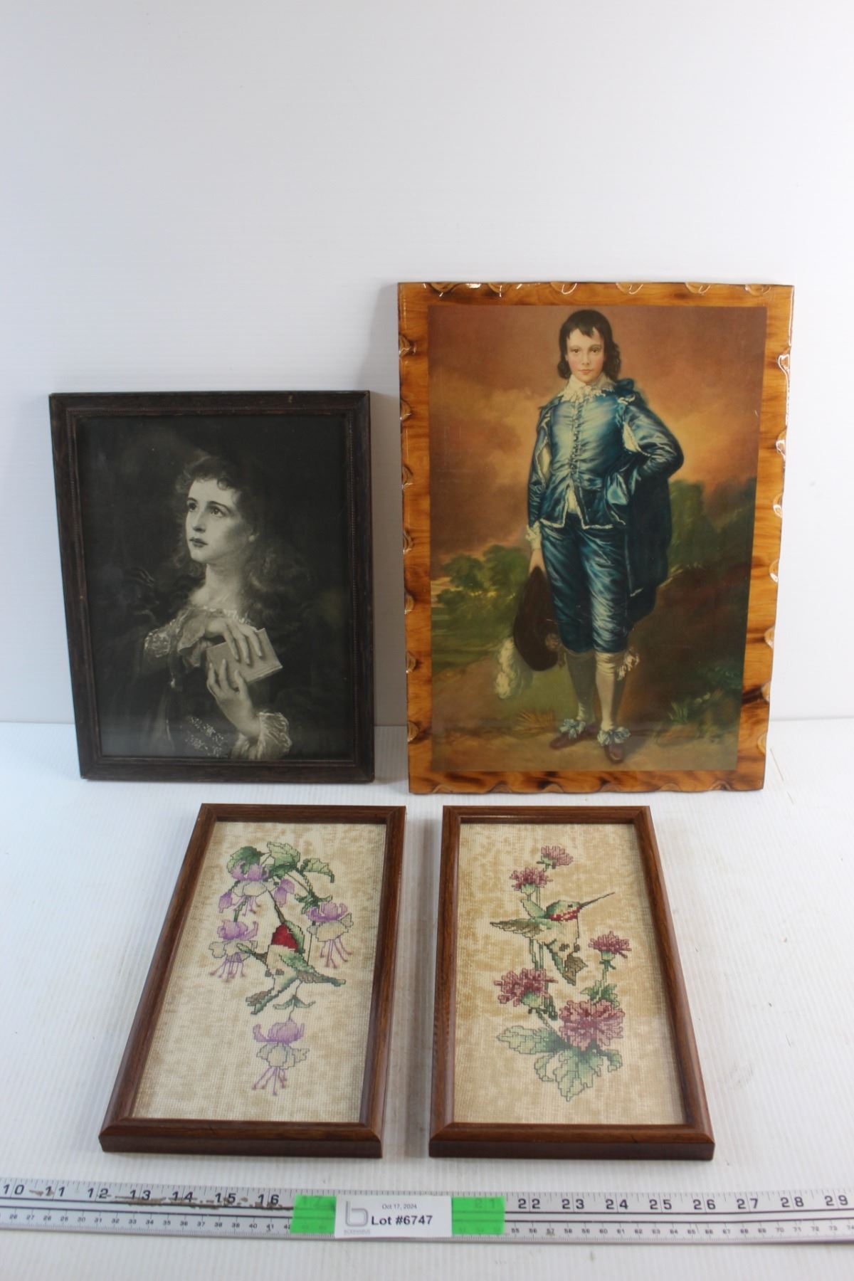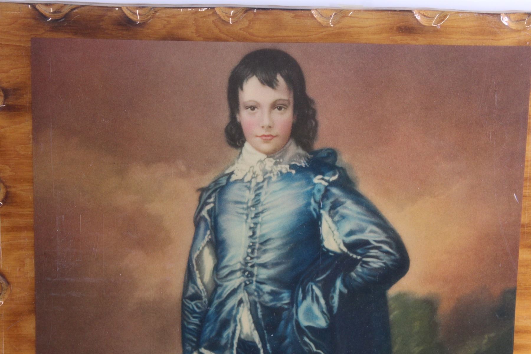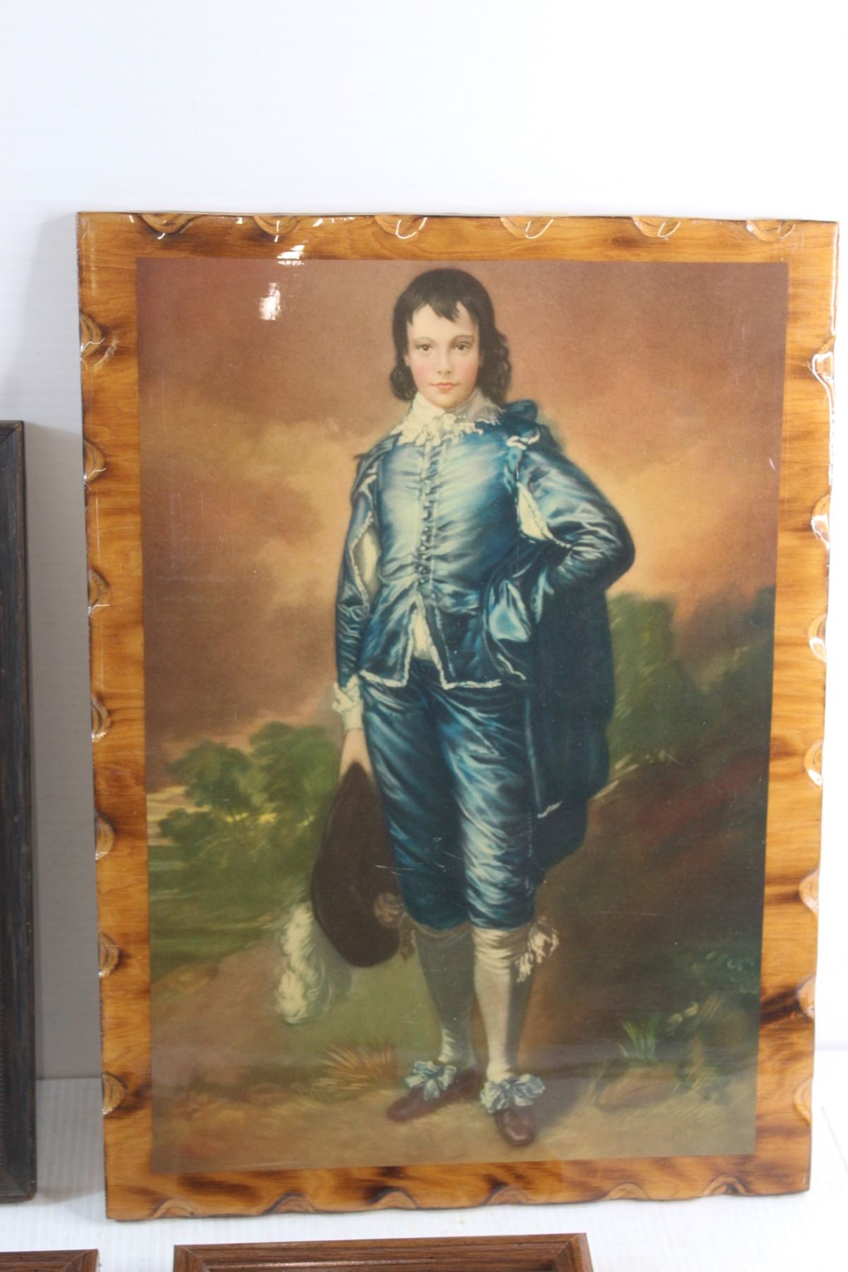 Framed Knitted Floral Art, Framed Portrait Print and Blue Boy Print