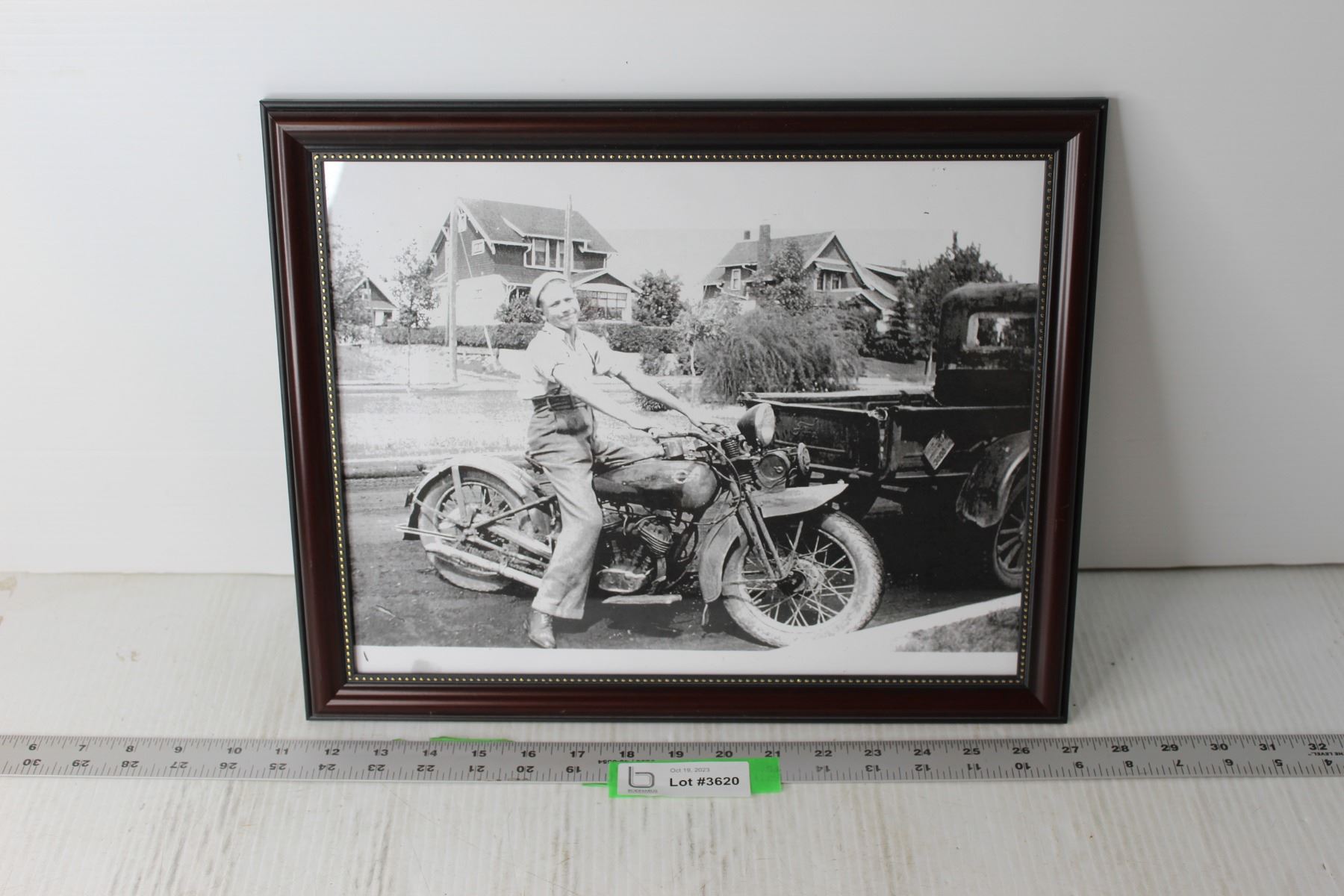 Framed Vintage Harley Davidson Photo - 12 1/2" x 16"