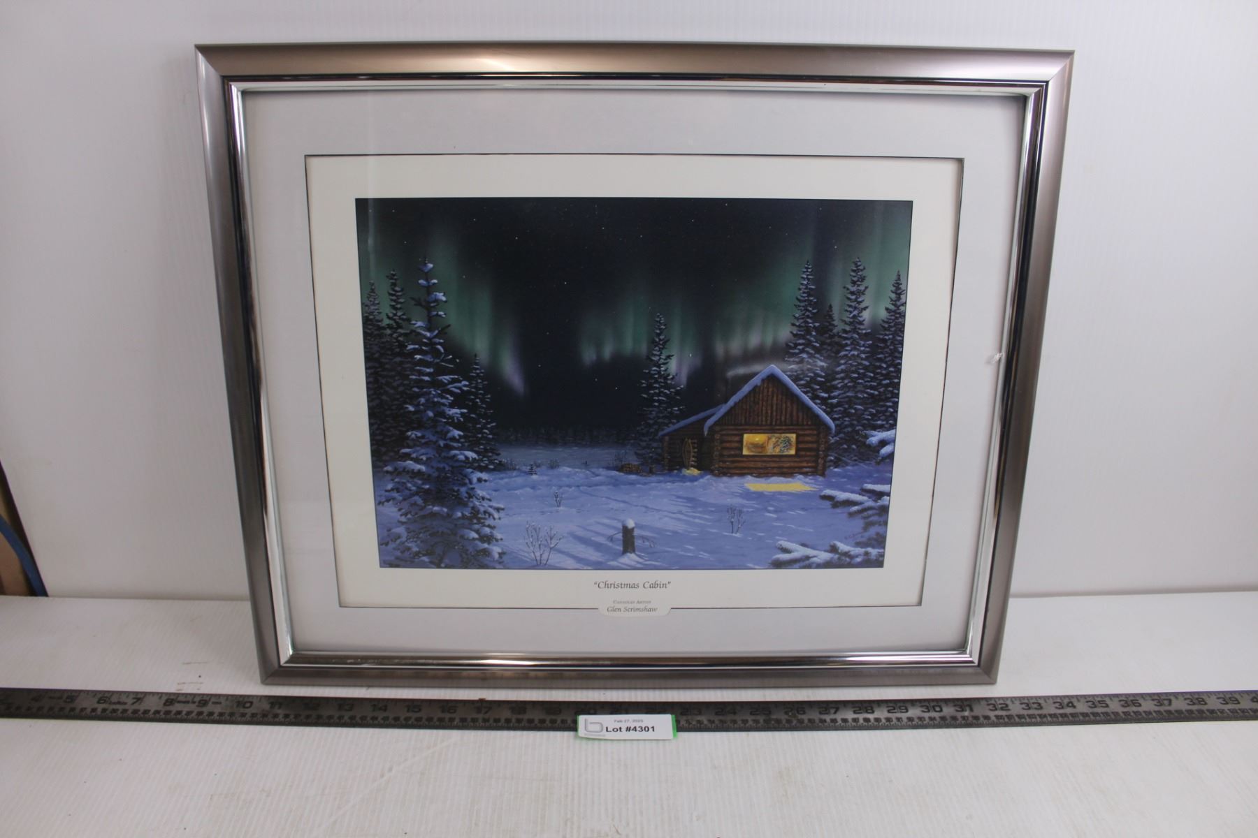 Framed Wall Art - Glen Scrimshaw Print "Christmas Cabin" - 22" x 18"