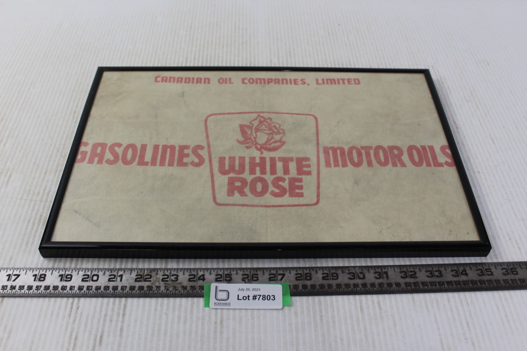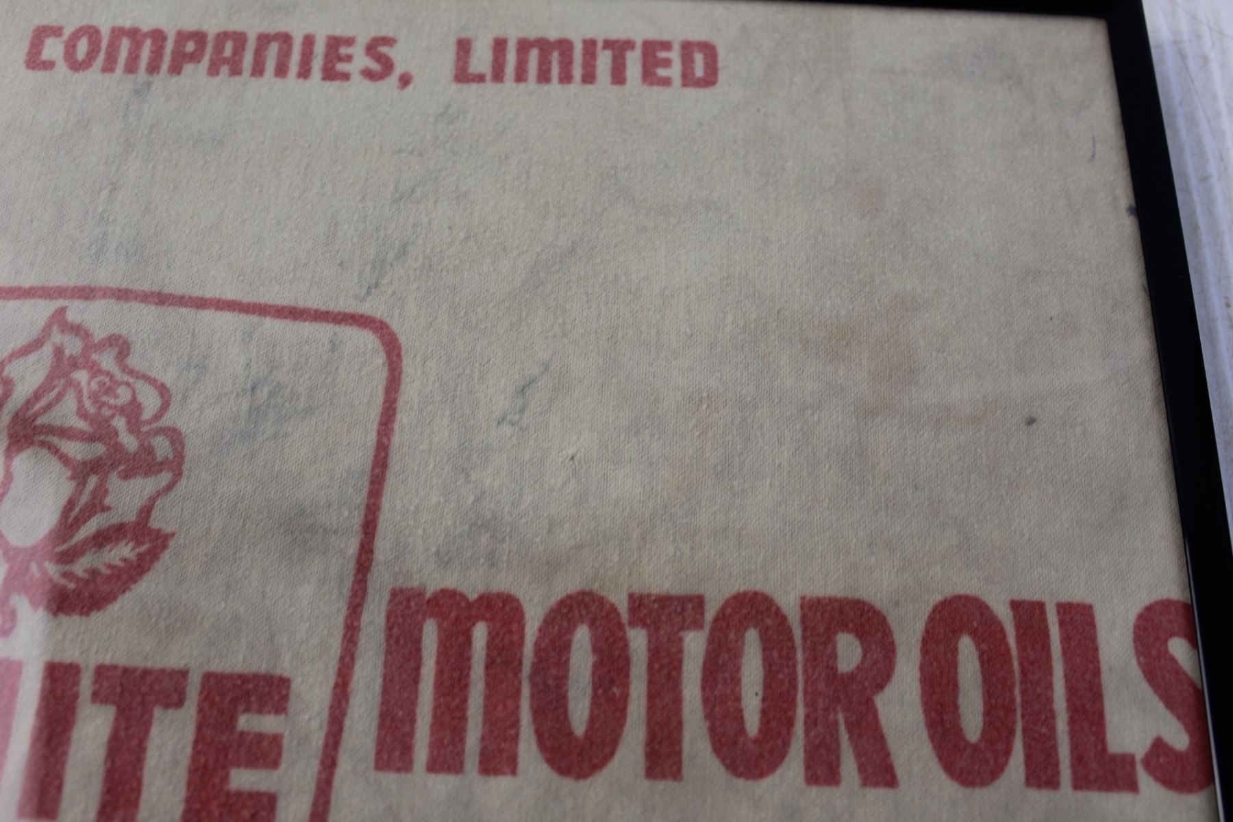 Framed White Rose Motor Oil Shammy