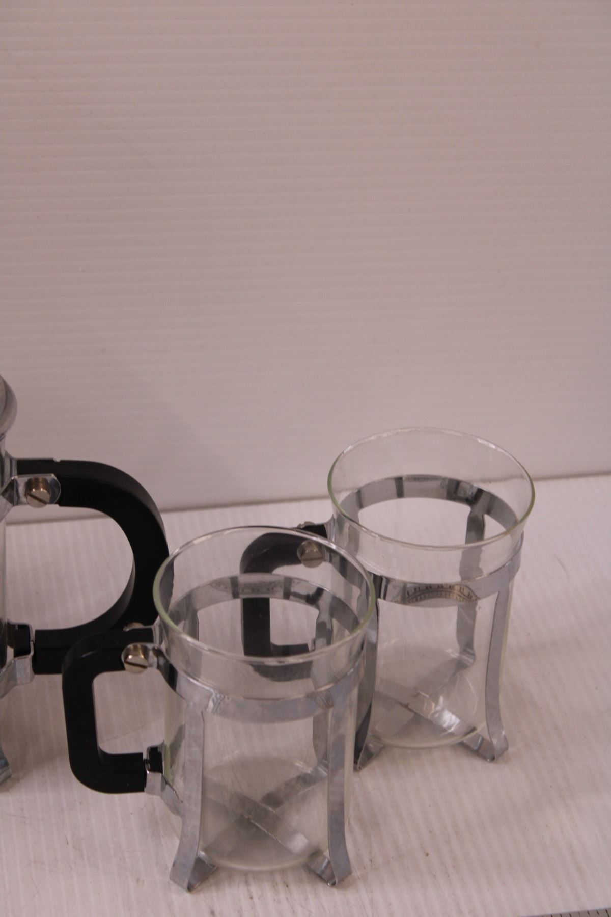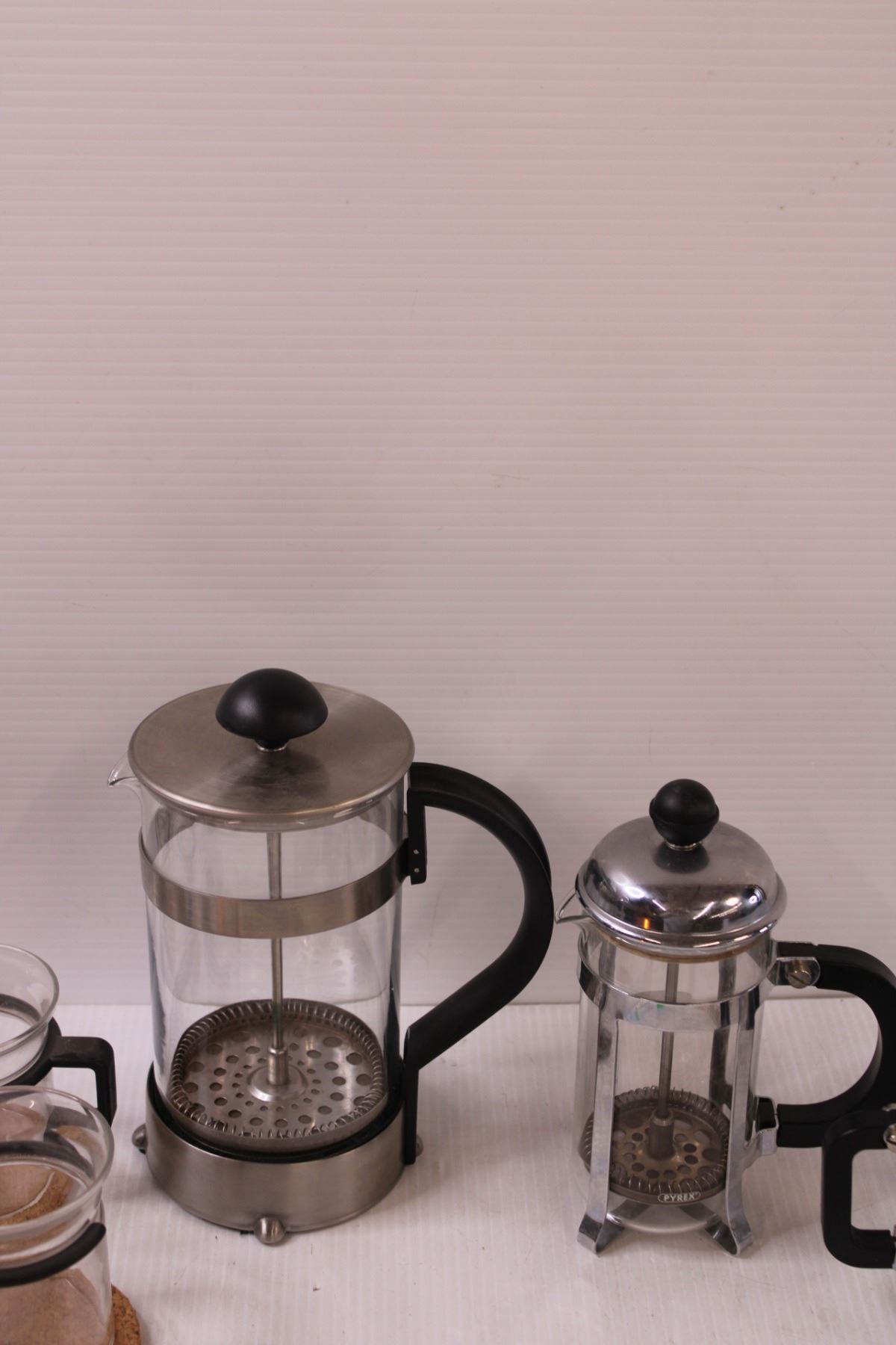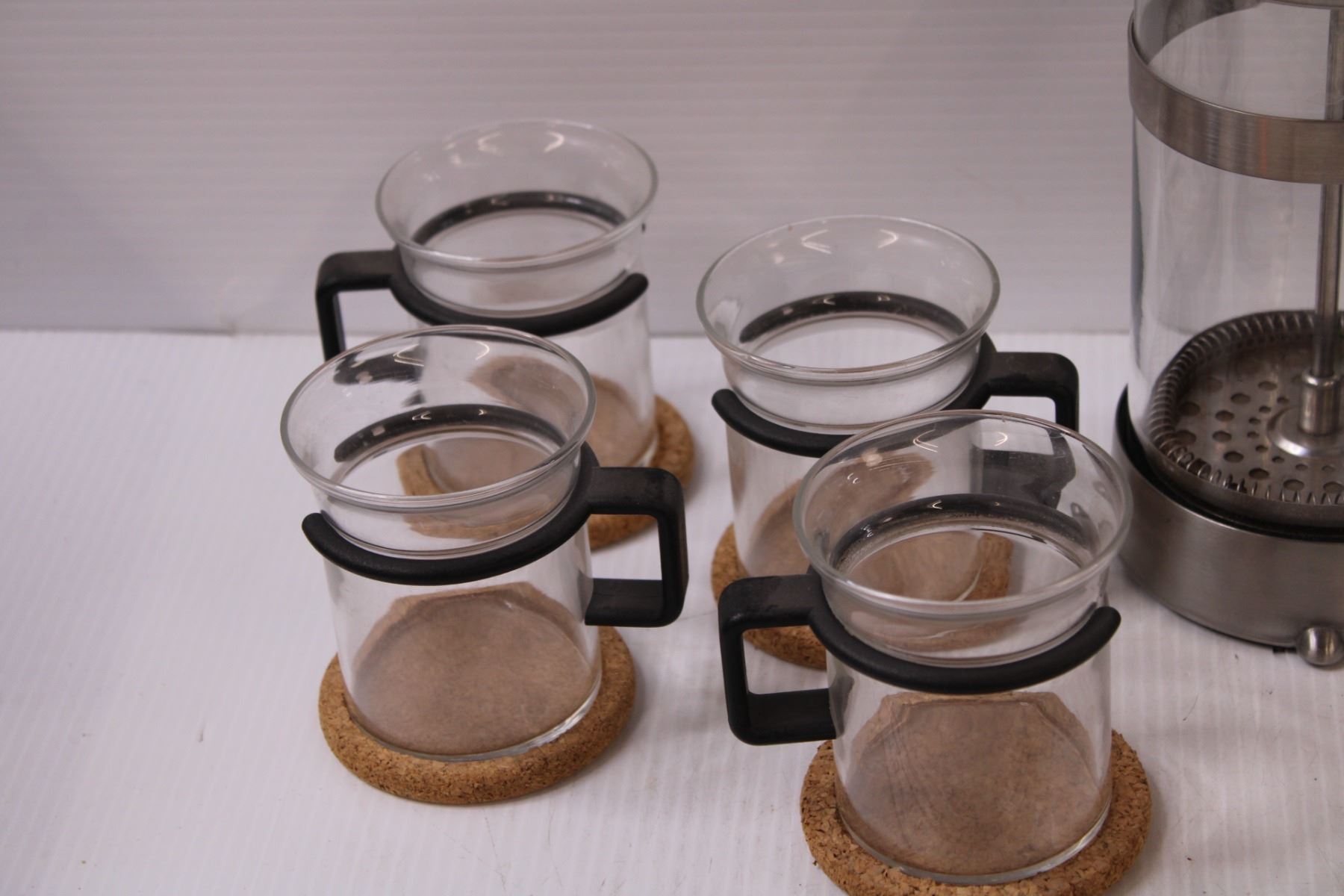 French Press Coffee Carafes & (6) Glass Coffee Mugs & (4) Cork Coasters
