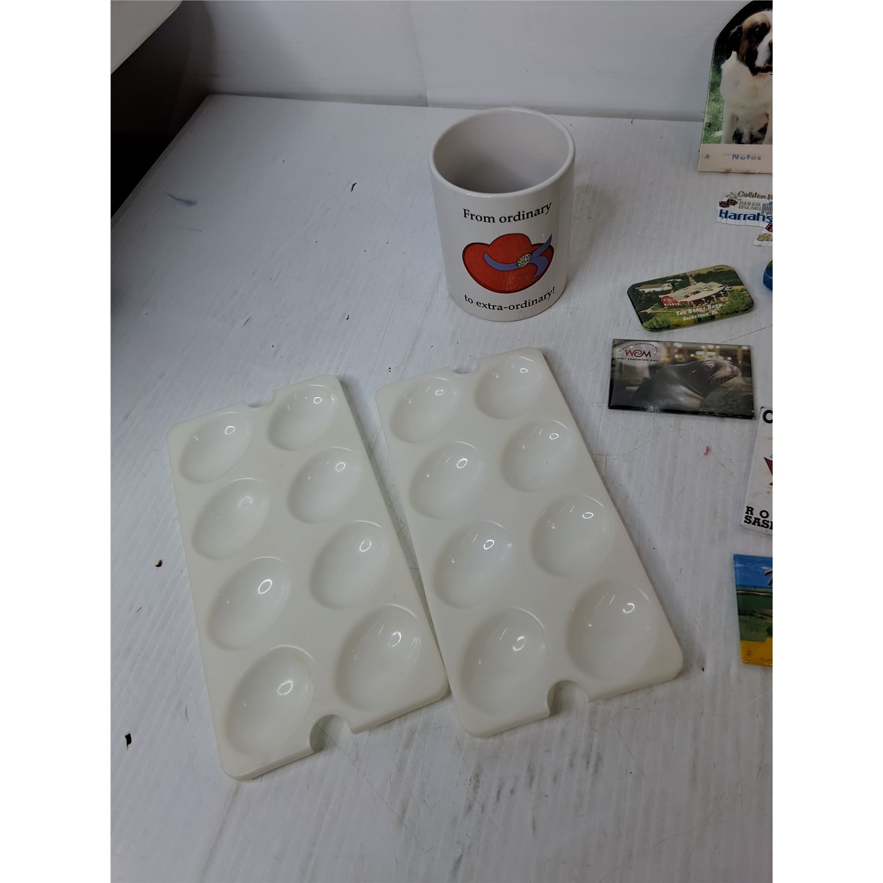 Fridge Magnets, Red Hat Mug, Egg Tray Inserts