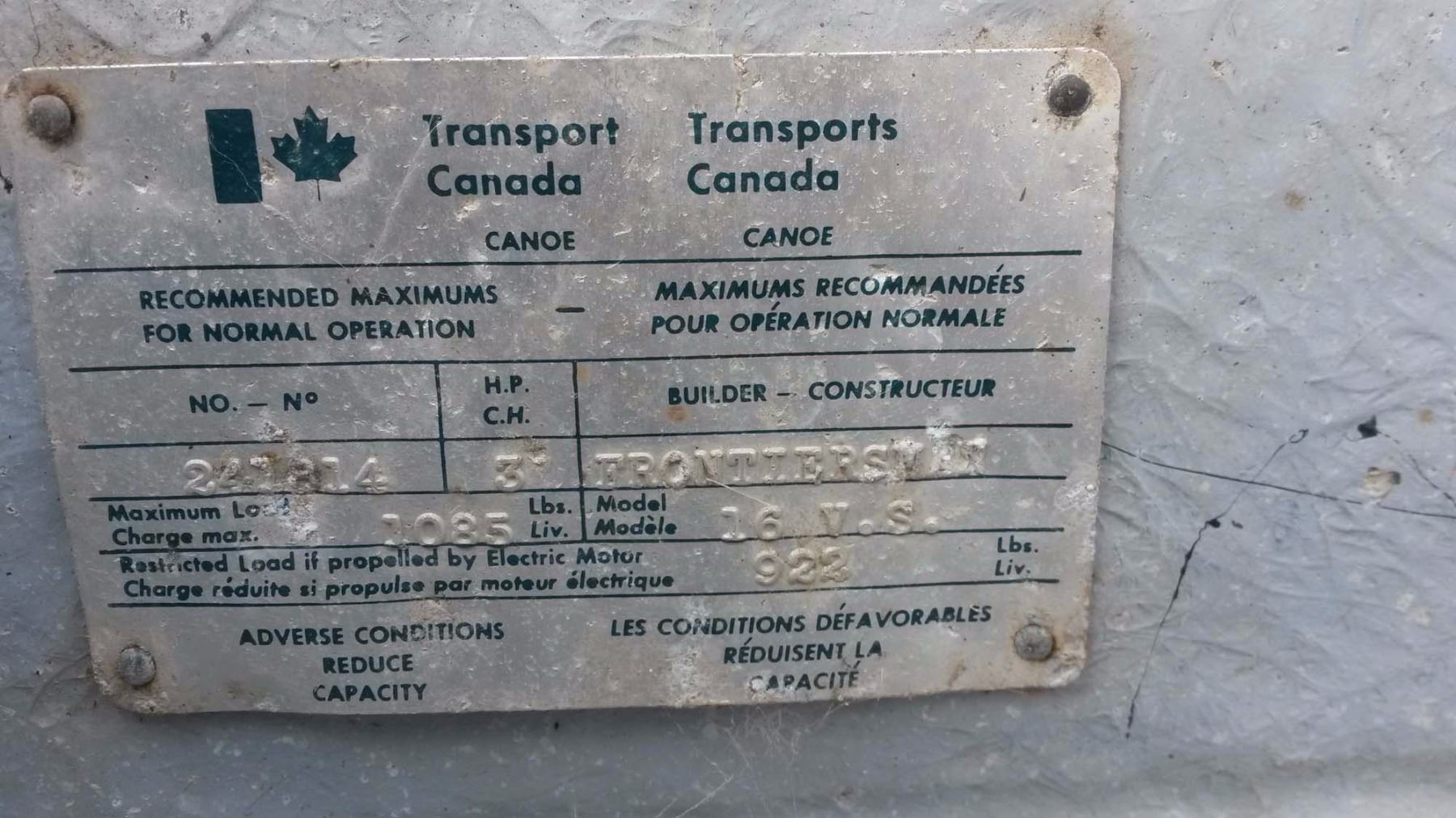 Frontiersman Fiberglass Canoe (16Ft) (Repaired)