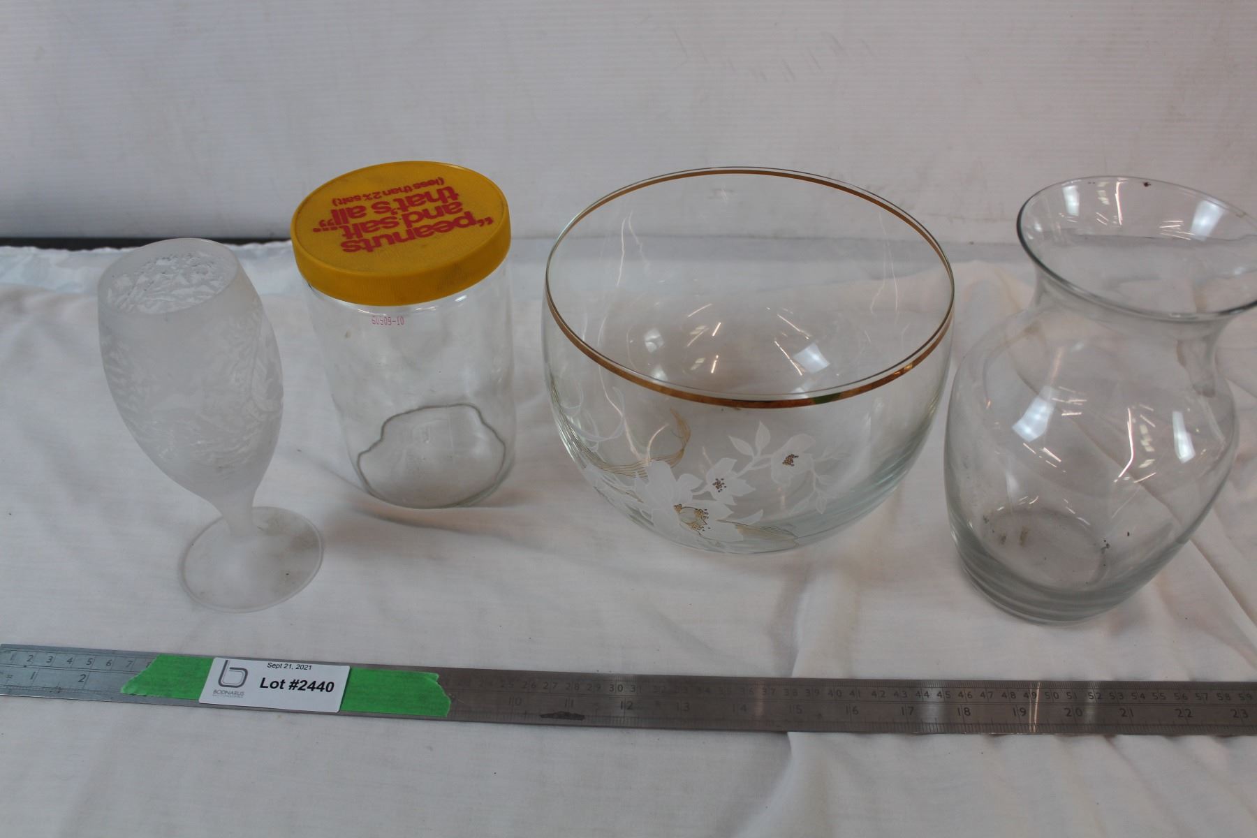 Frosted moose glass, glass bowl, glass vase, peanut butter jar