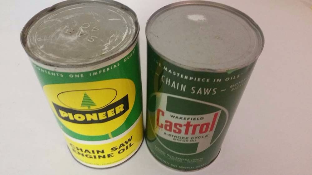 Full Chainsaw Oil Tins (2) (Castrol, Pioneer)