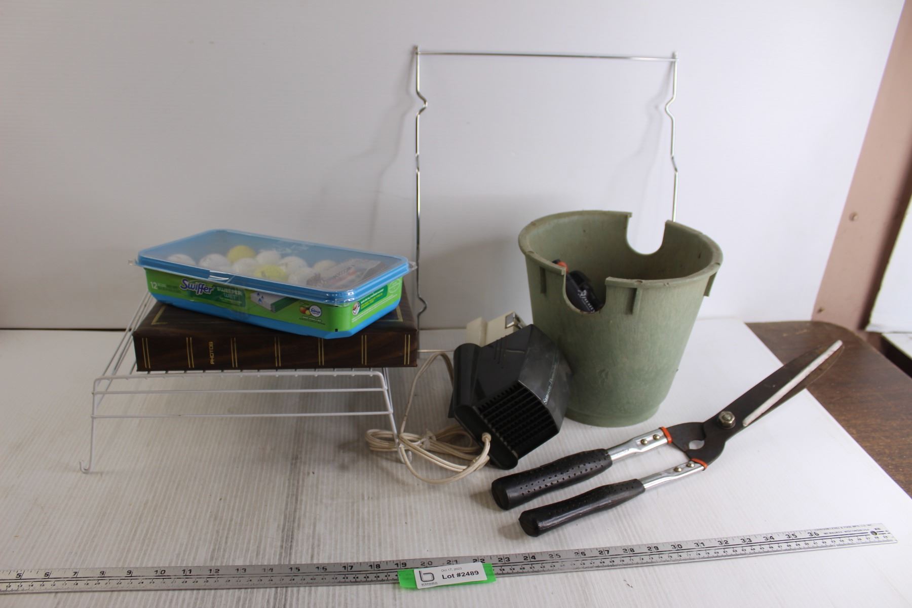 Garden Clippers (?), (11) Golf Balls, Samson Dominion Press Electric Knife Sharpener- Cosignor Says Working, Misc.