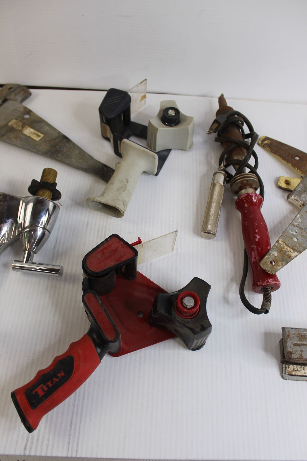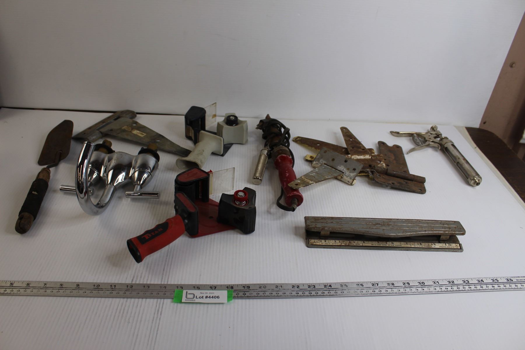 Garden Hand Shovel, (2) Packing Tape Dispensers, Hole Punch, Misc.