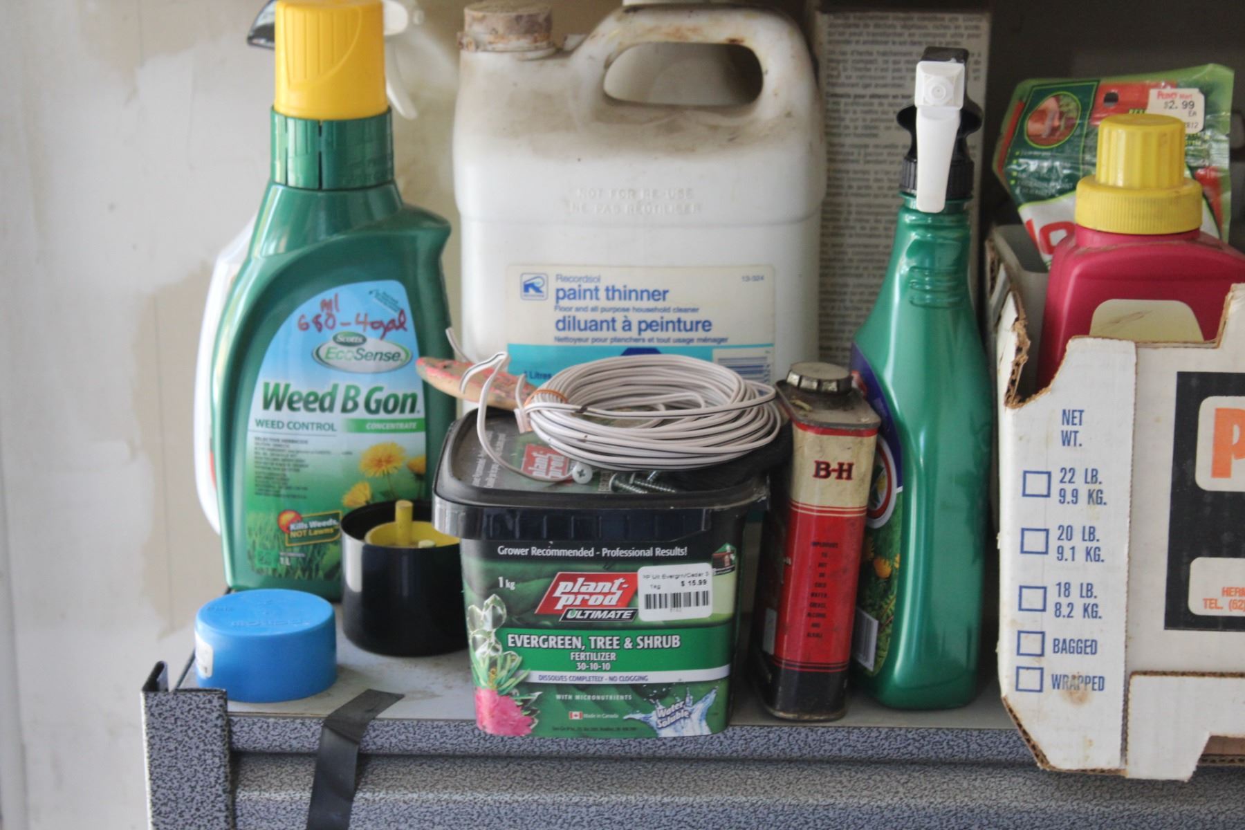 Garden & Shop Chemicals: Windshield Washer Fluid, Fertilizer, Weed Chemical, Paint Thinner, Misc.