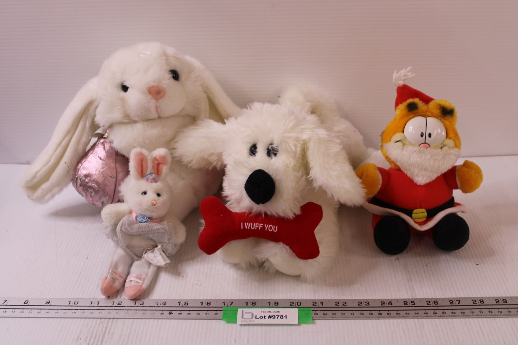 Garfield Santa Stuffy & (3) Stuffies: Bunnies & Puppy