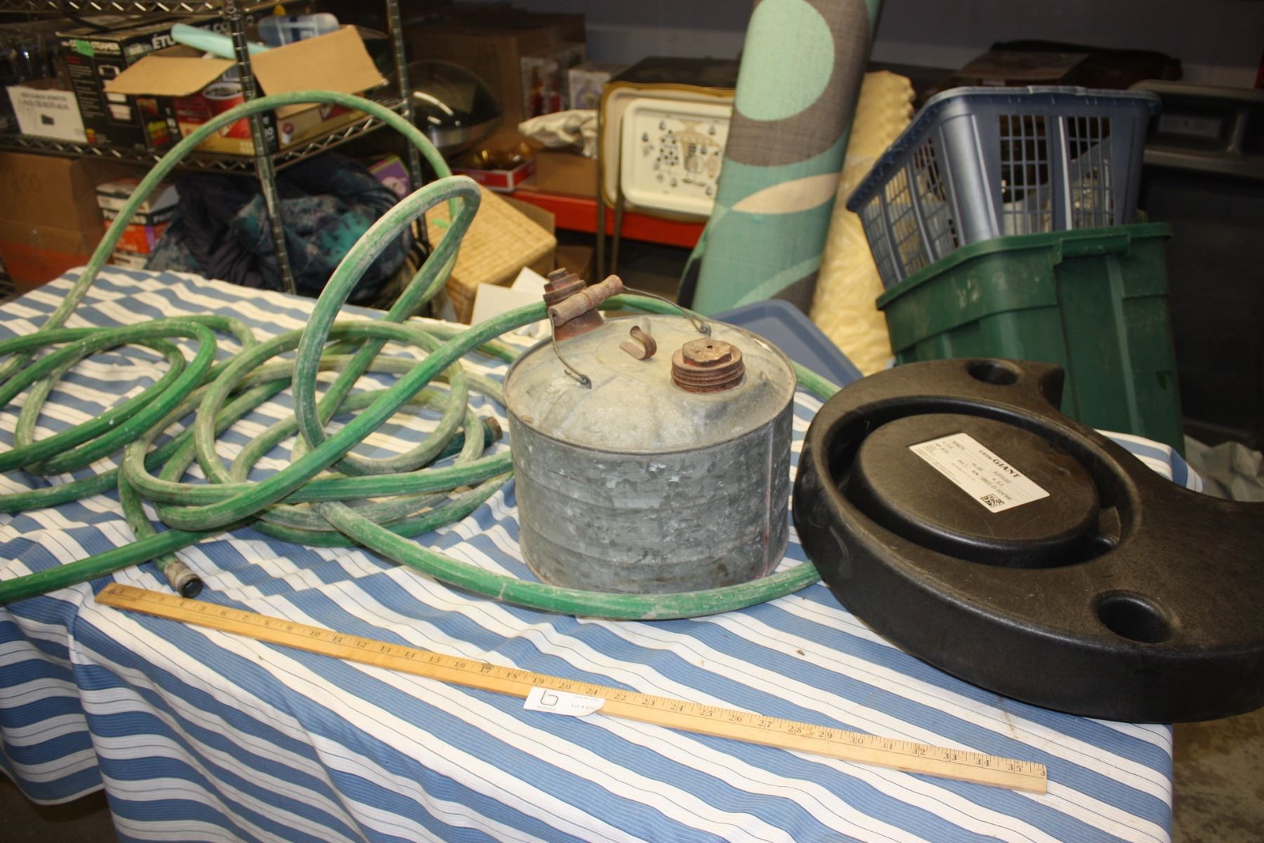 Gas Can, Garden Hose and Little Giant Hot Water Heater Stand