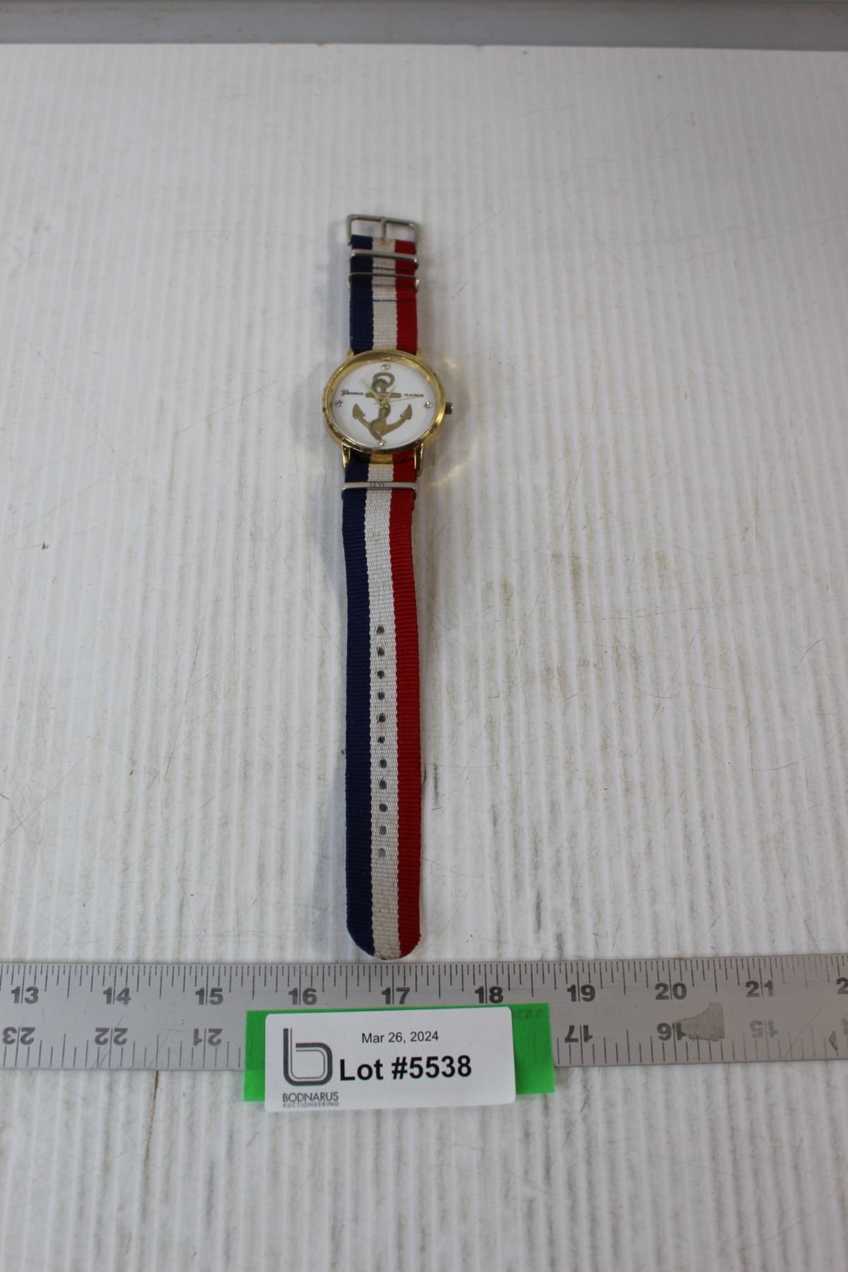 Geneva Platinum Wristwatch, Red, White & Blue Band