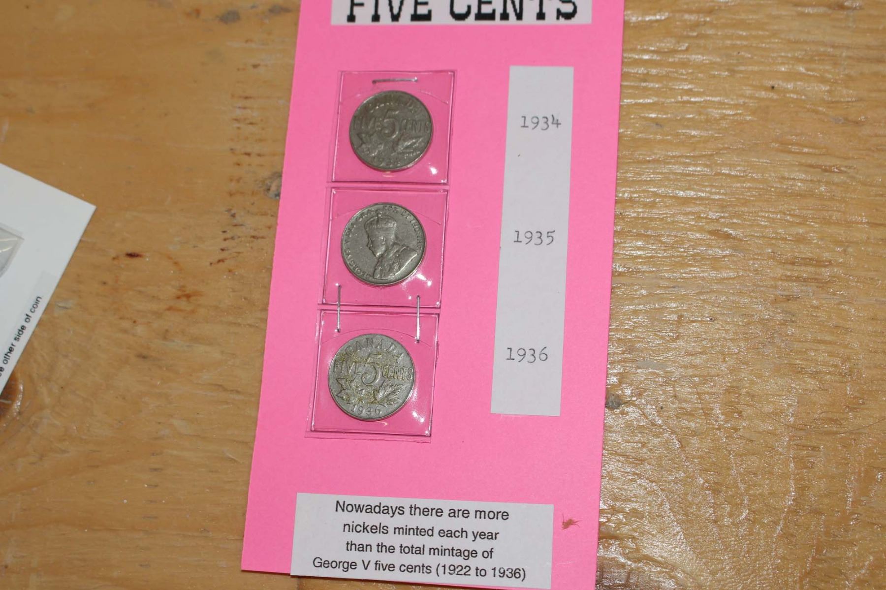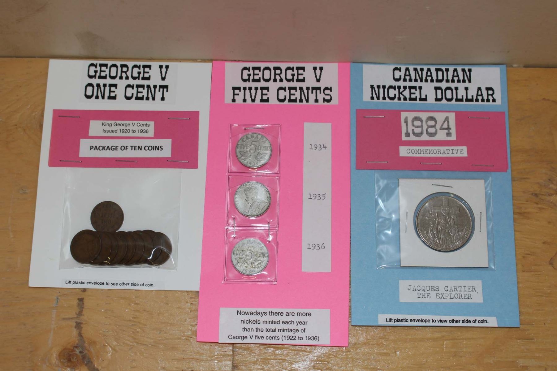 George V 5 Cent Coins- 1934, 1935, 1936, 1984 Nickel Dollar- Jacques Cartier&George V 1 Cent 1920 to