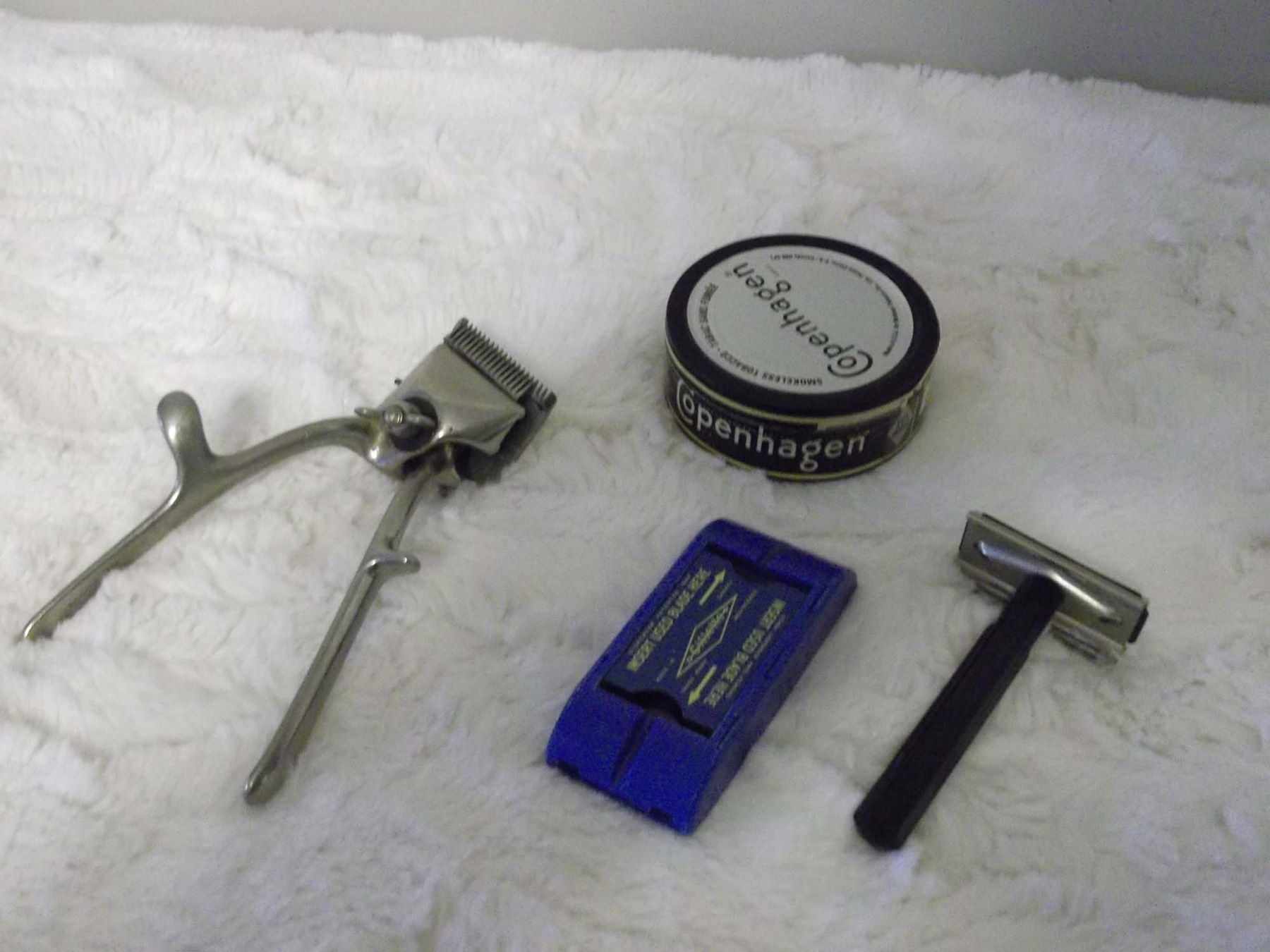 Gillette Razor And Gillette Blades With 125 Year Copenhagen Tin And Hair Clipper