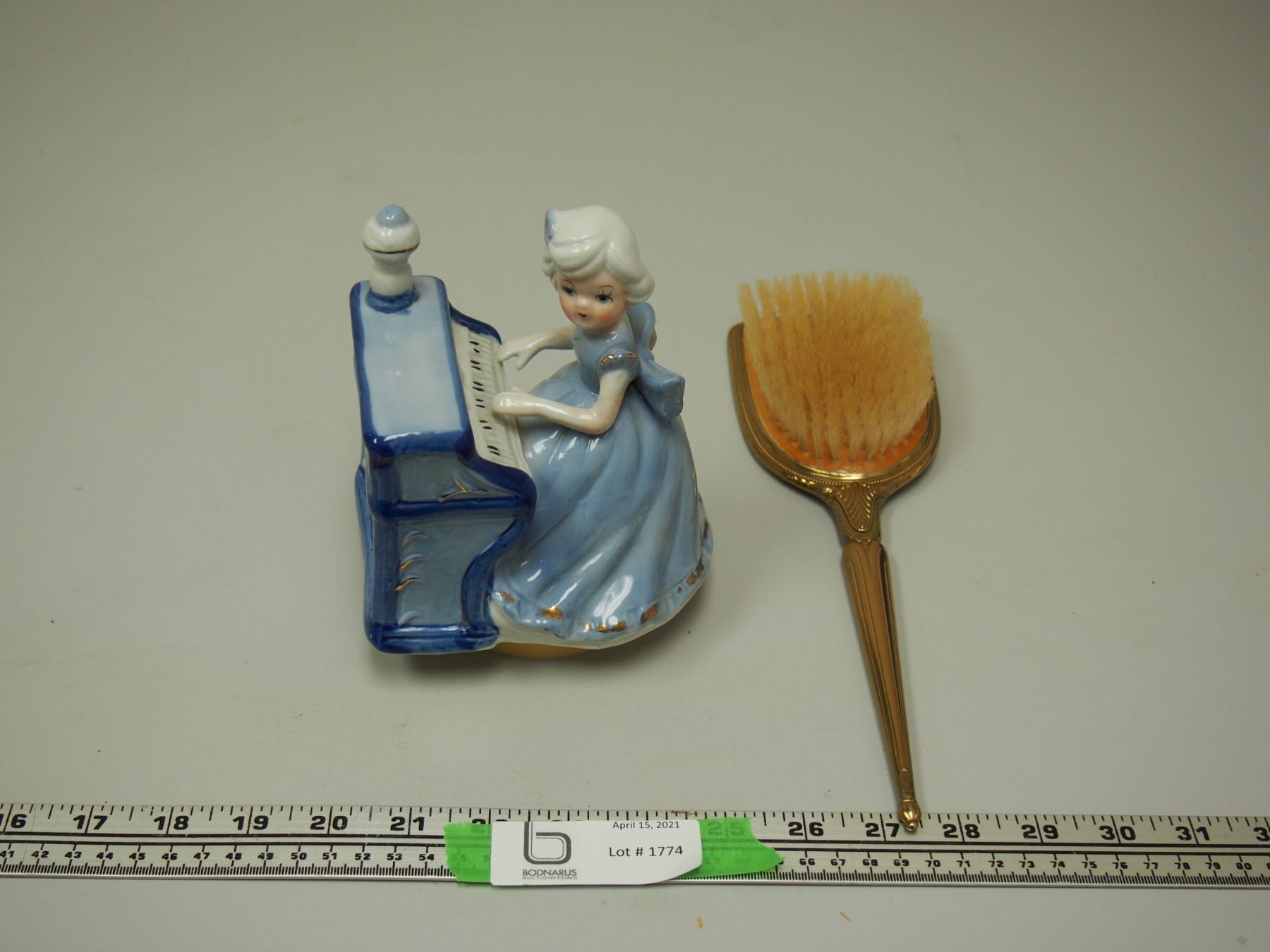 Girl Playing Piano Music Box (working) Plus Vintage Hair Brush