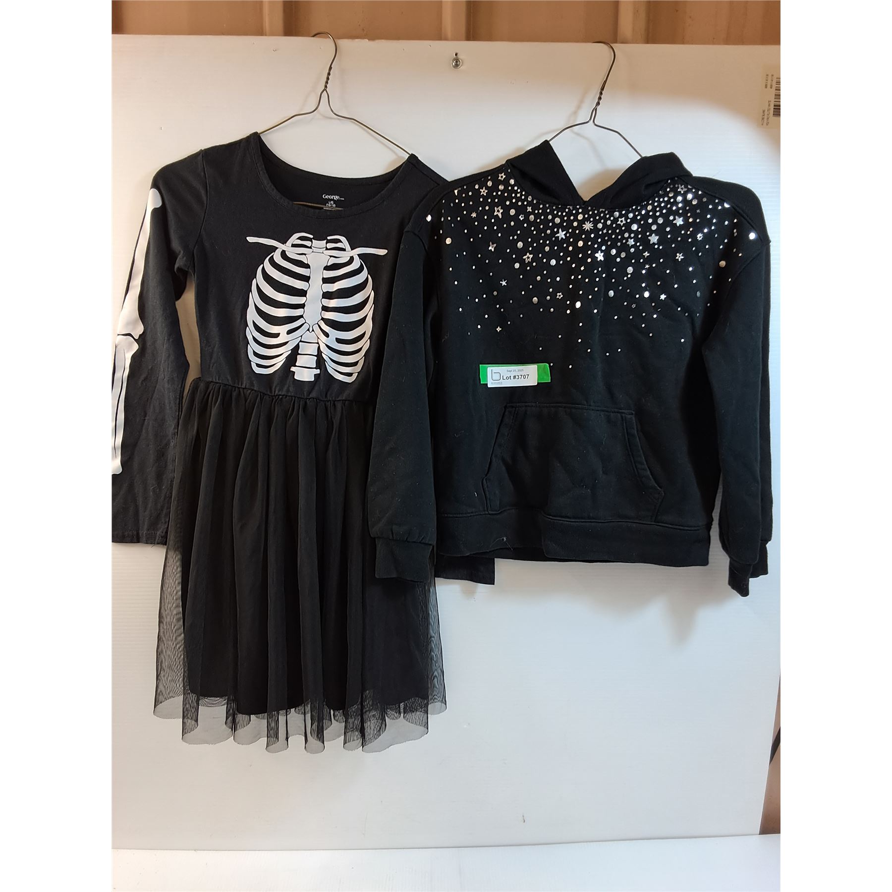 Girls Clothes: Skeleton Halloween Dress & Silver Stars Hoodie - Size 10-12
