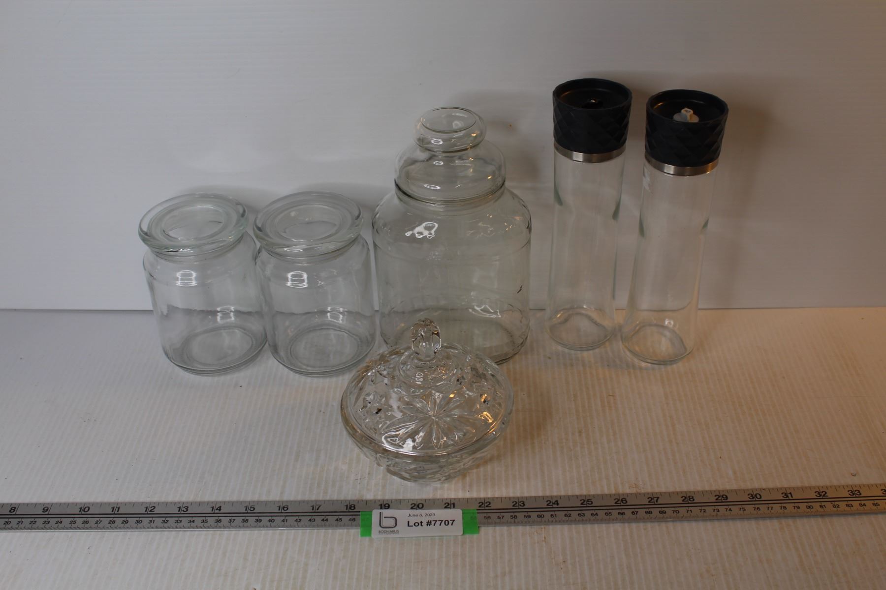 Glass Bowl w/Lid - salt & Pepper Jars - (3) Glass Container