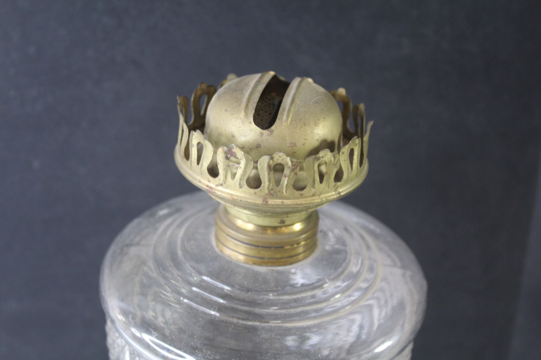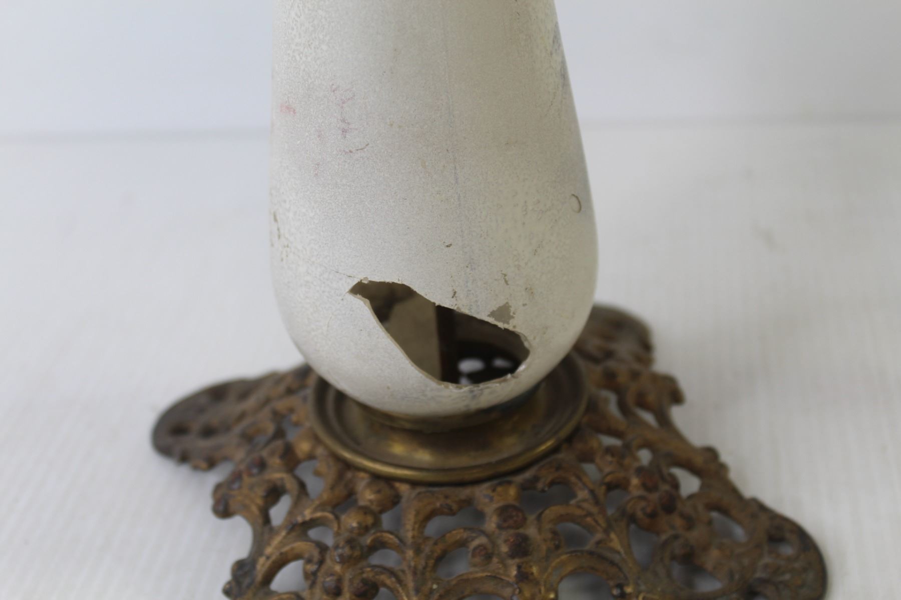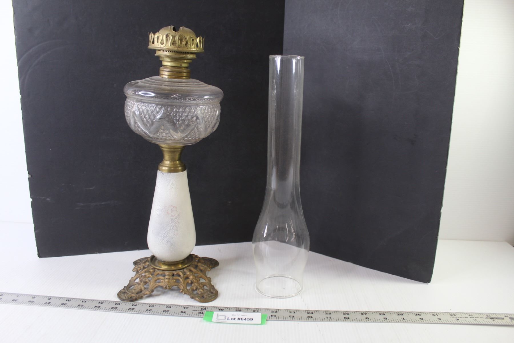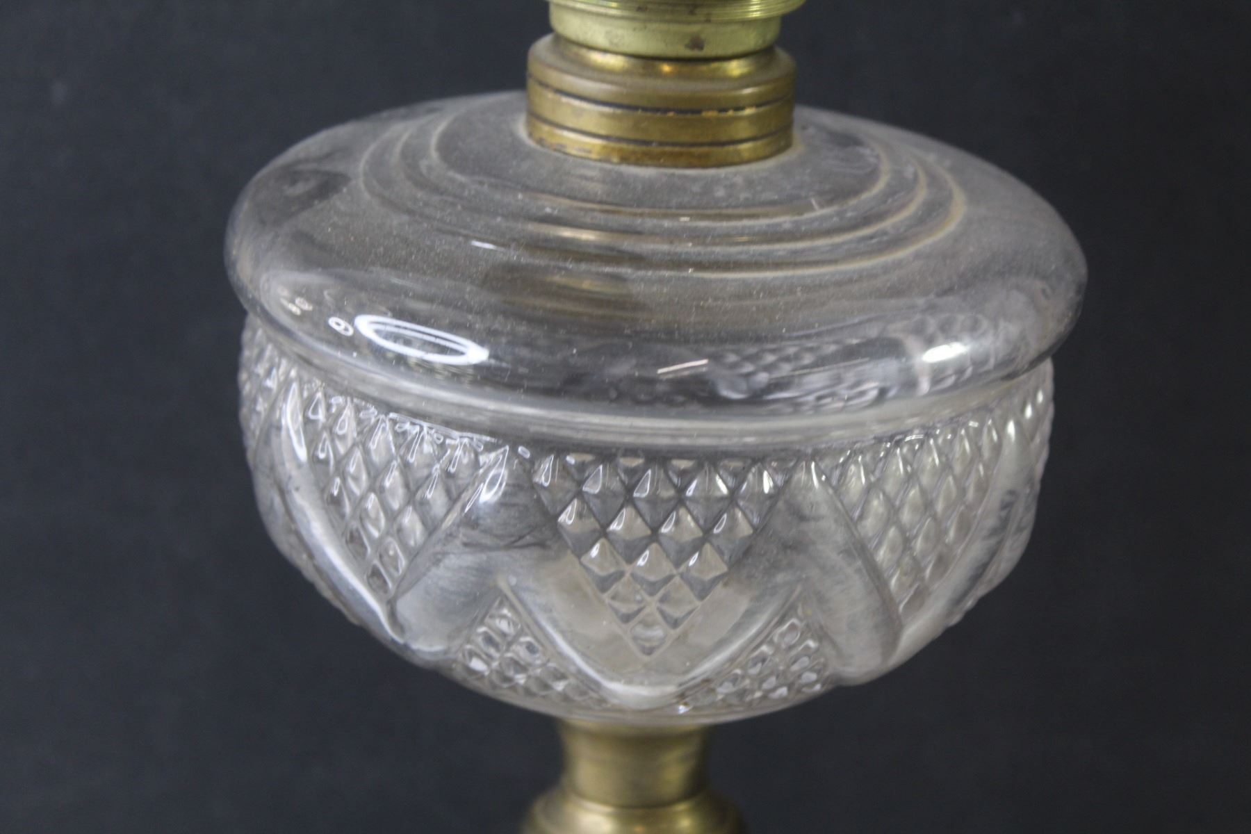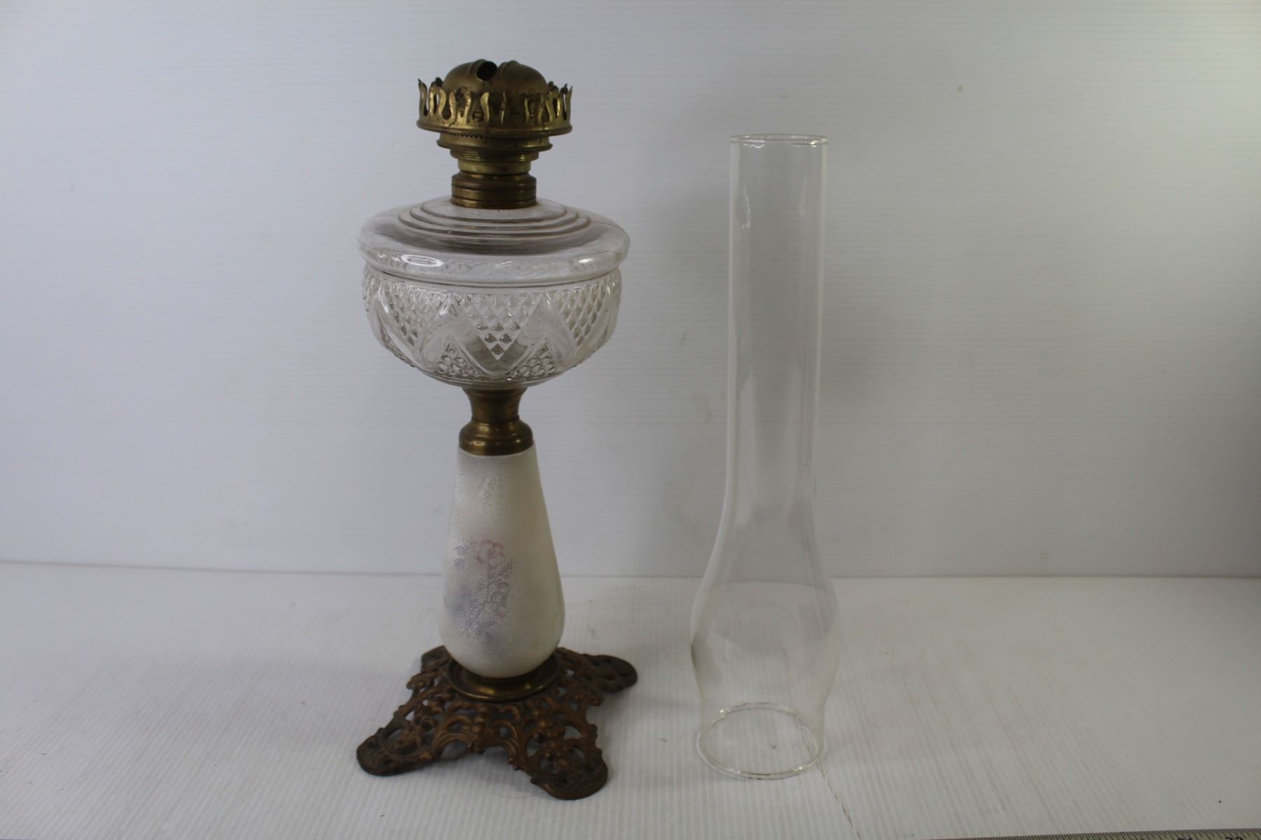 Glass & Brass Oil Lamp w/Chimney (bottom glass is broken)