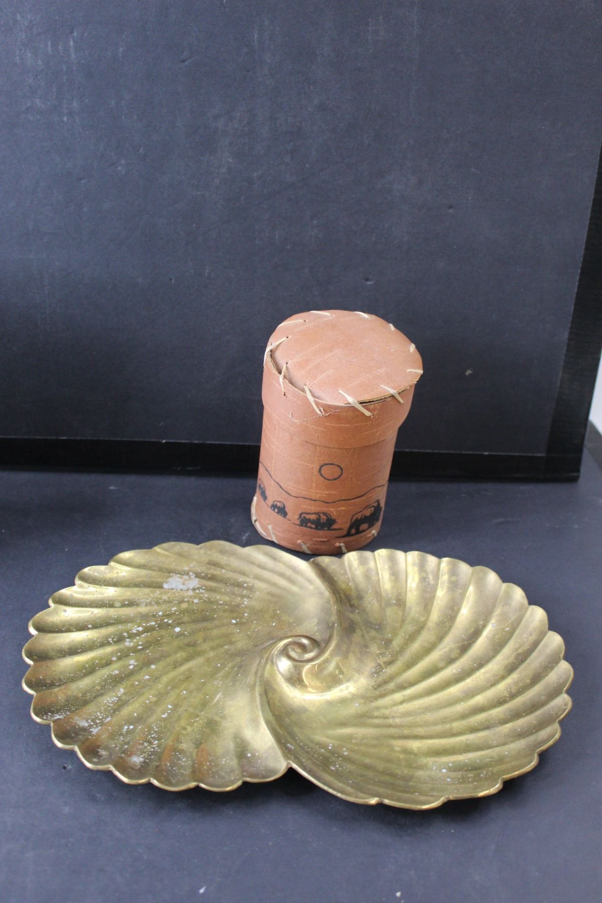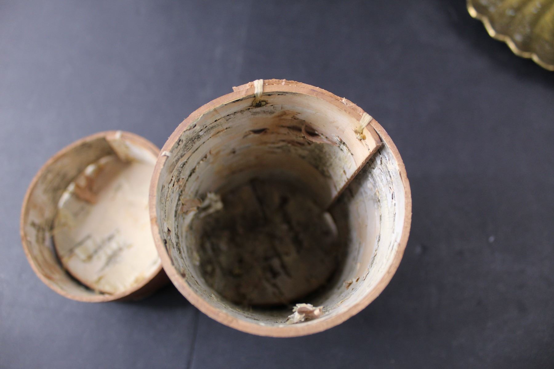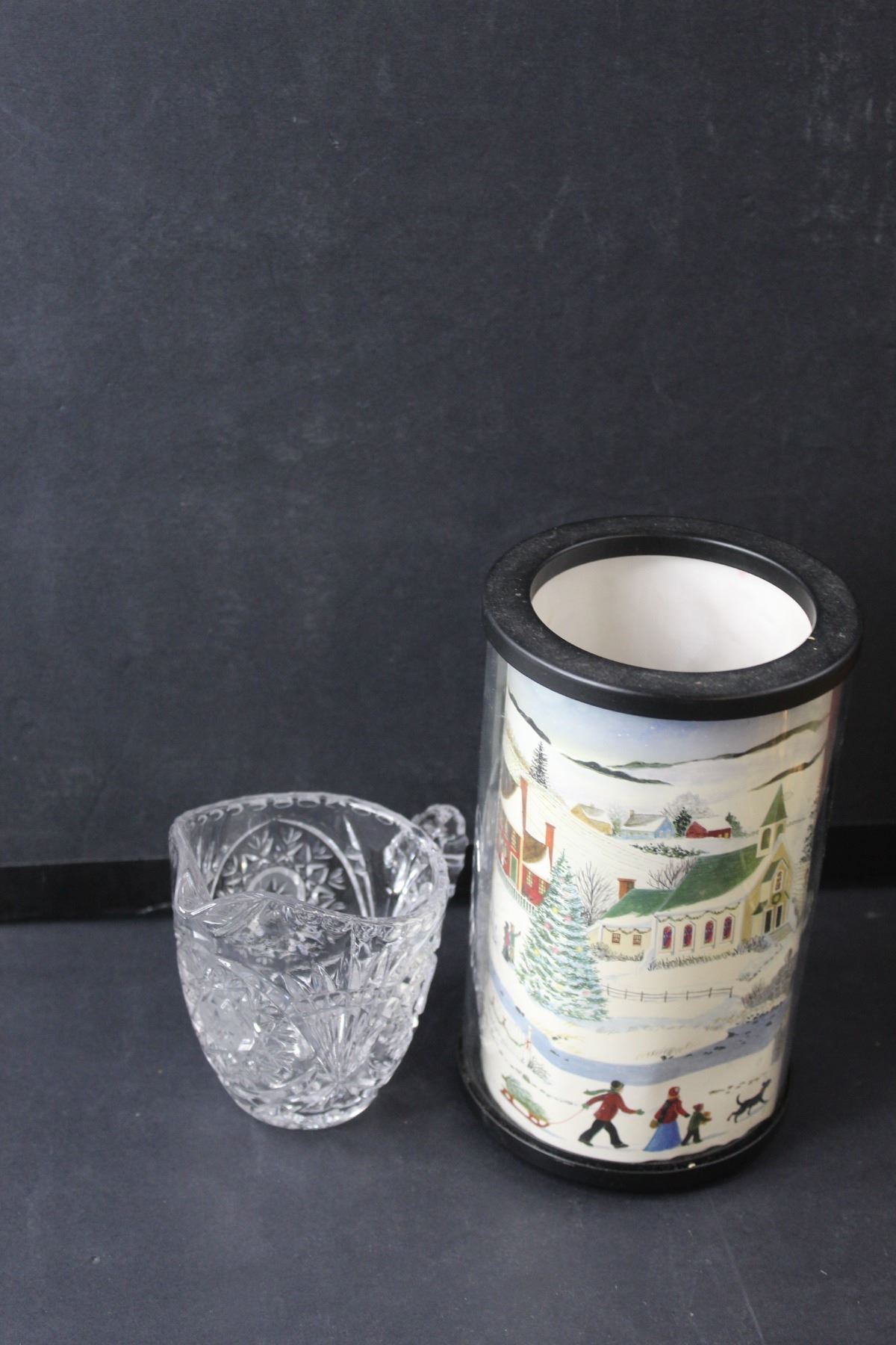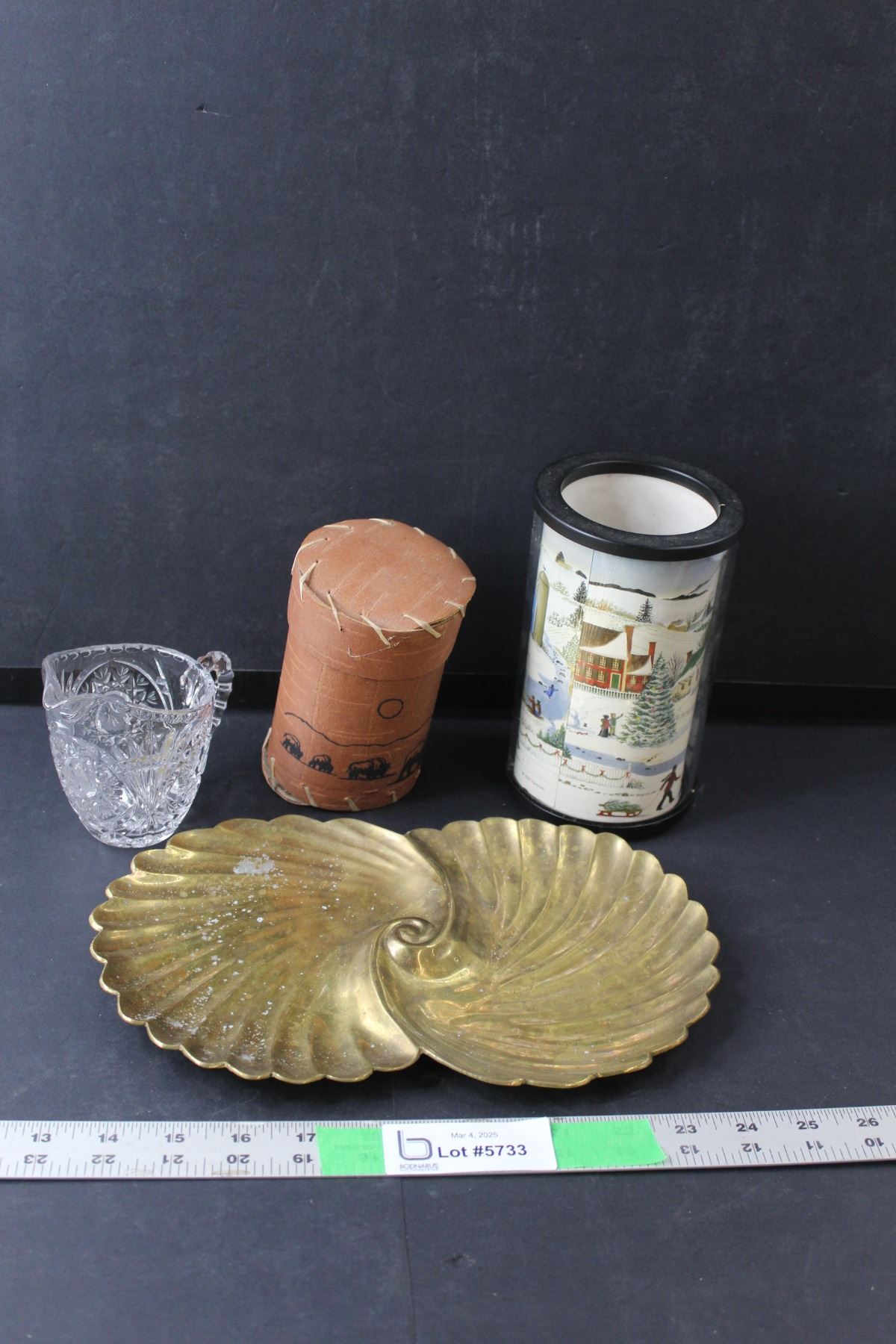 Glass Christmas Candle Holder 6.5" Tall, Decorated Birch Bark Container, Glass Creamer, Brass Tray