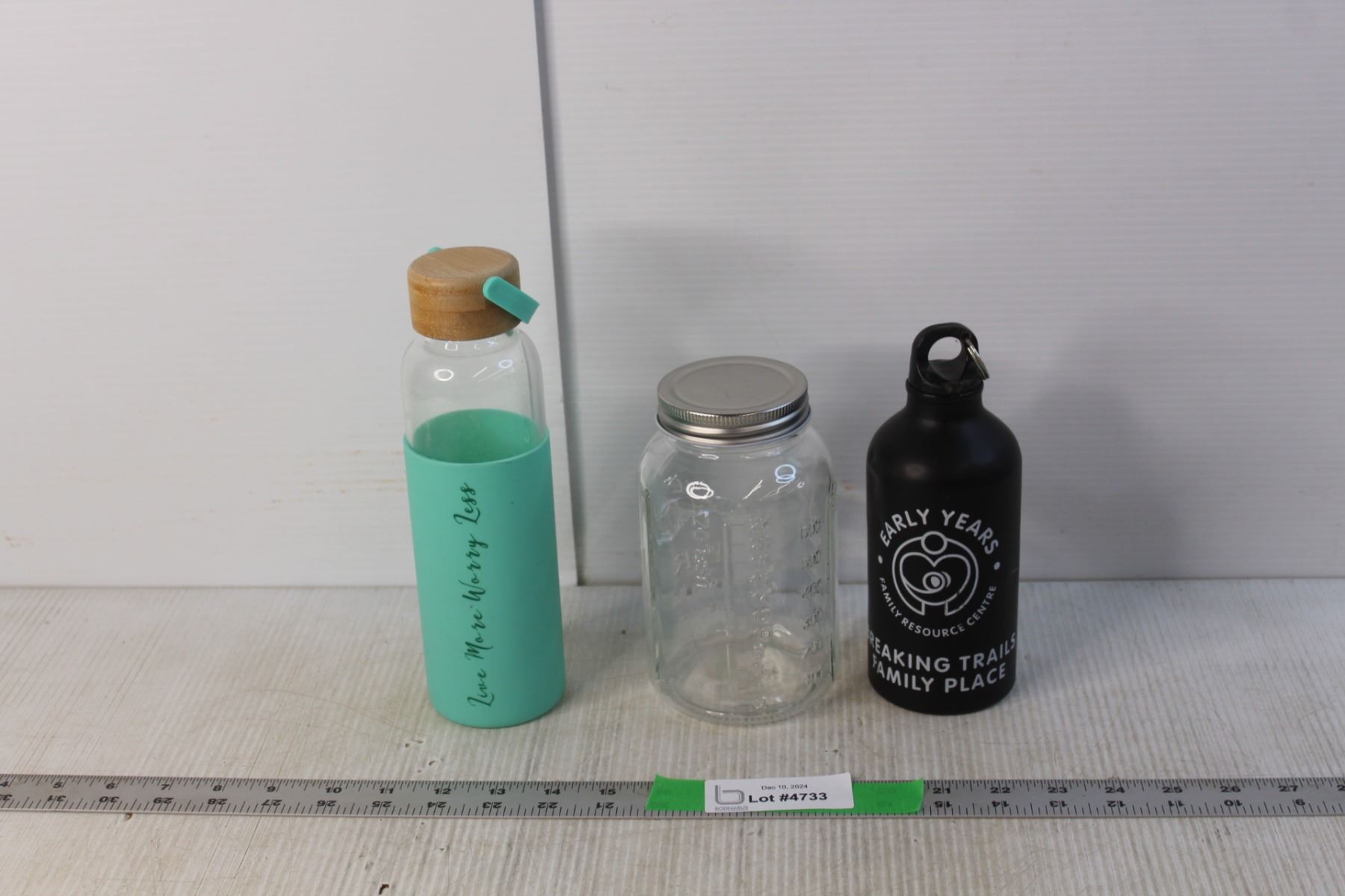 Glass Mason Jar 22 Oz., (2) Water Bottles