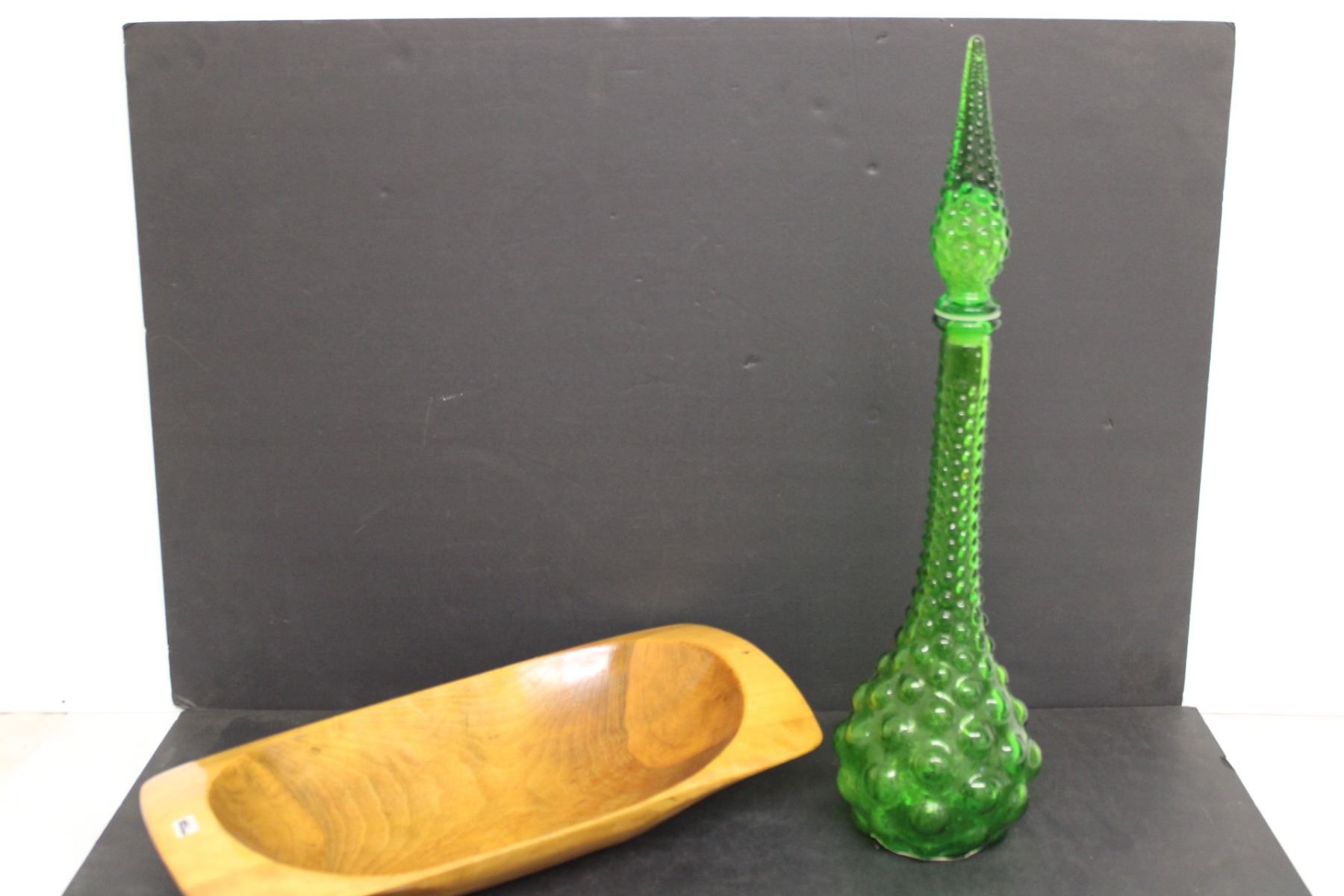 Glass Vase 20" Tall, Wood Tray 16." Long, Misc.