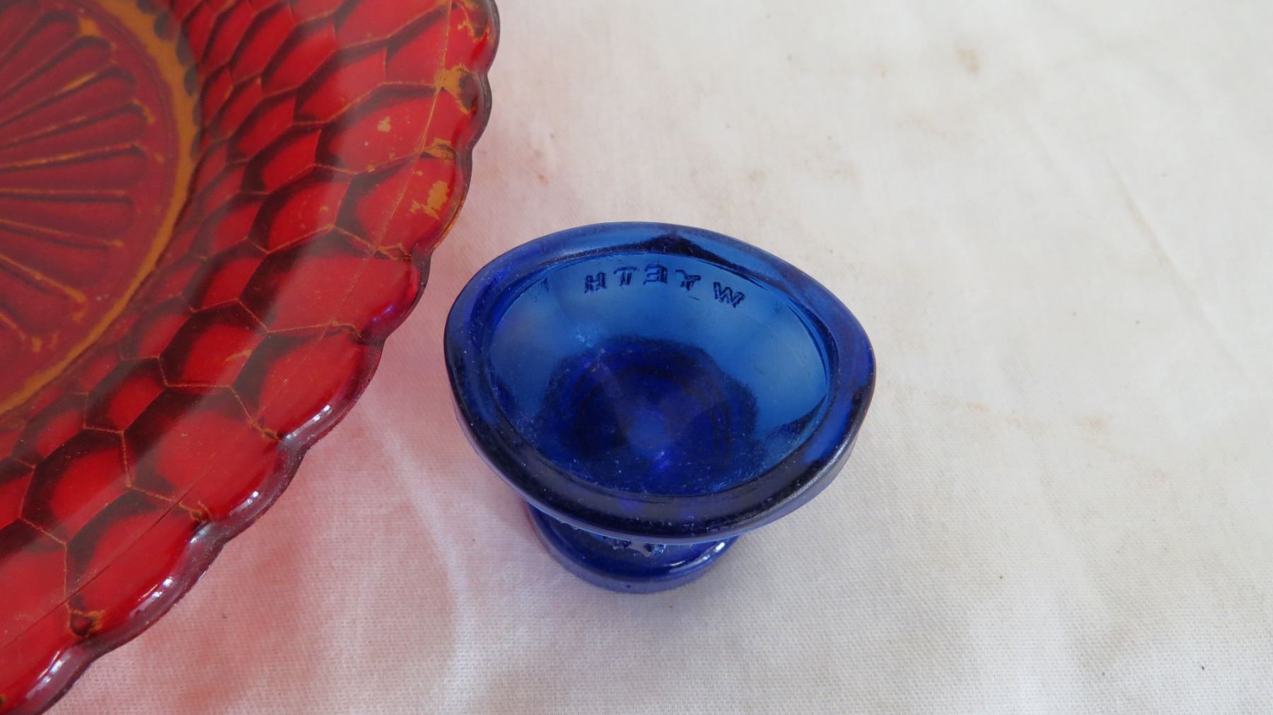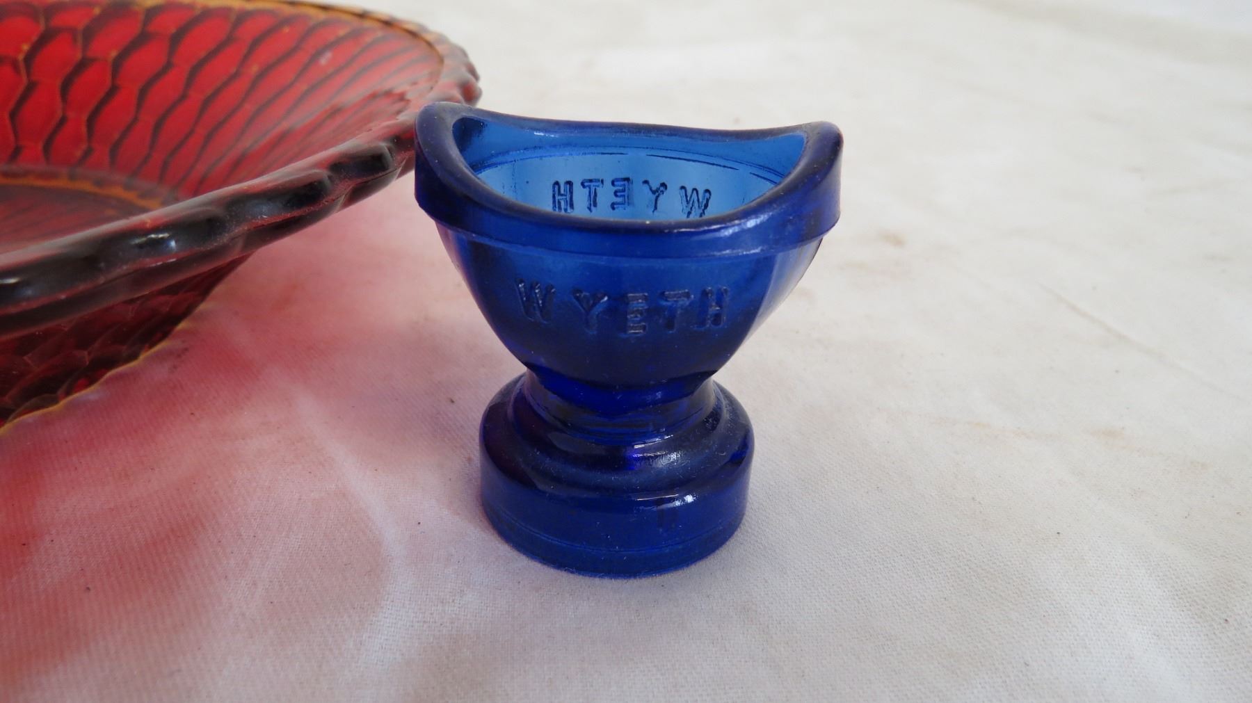 Glass bowls + wyeth covalt blue eye wash cup