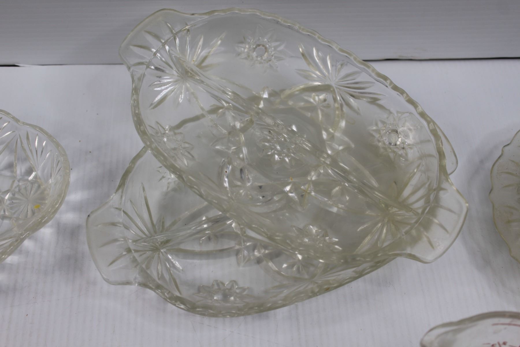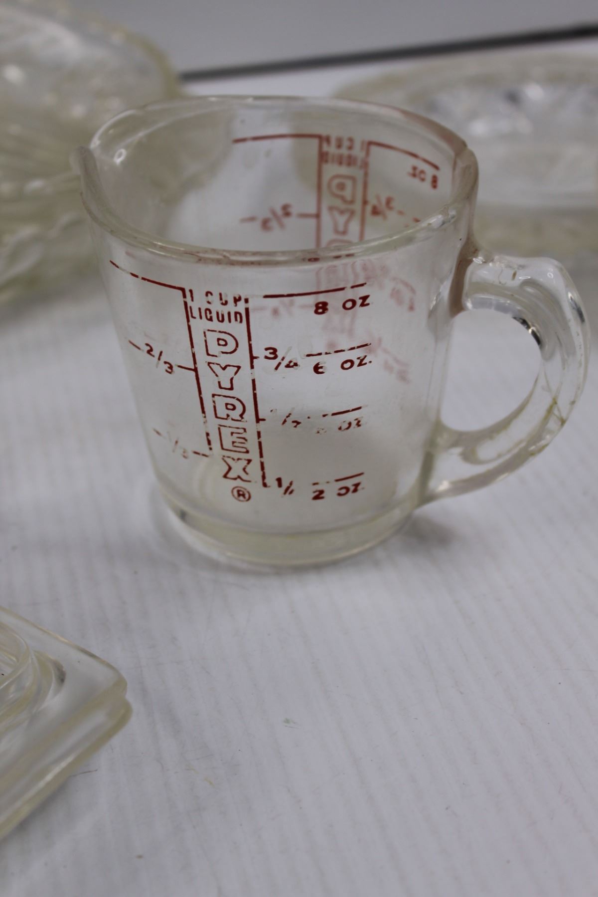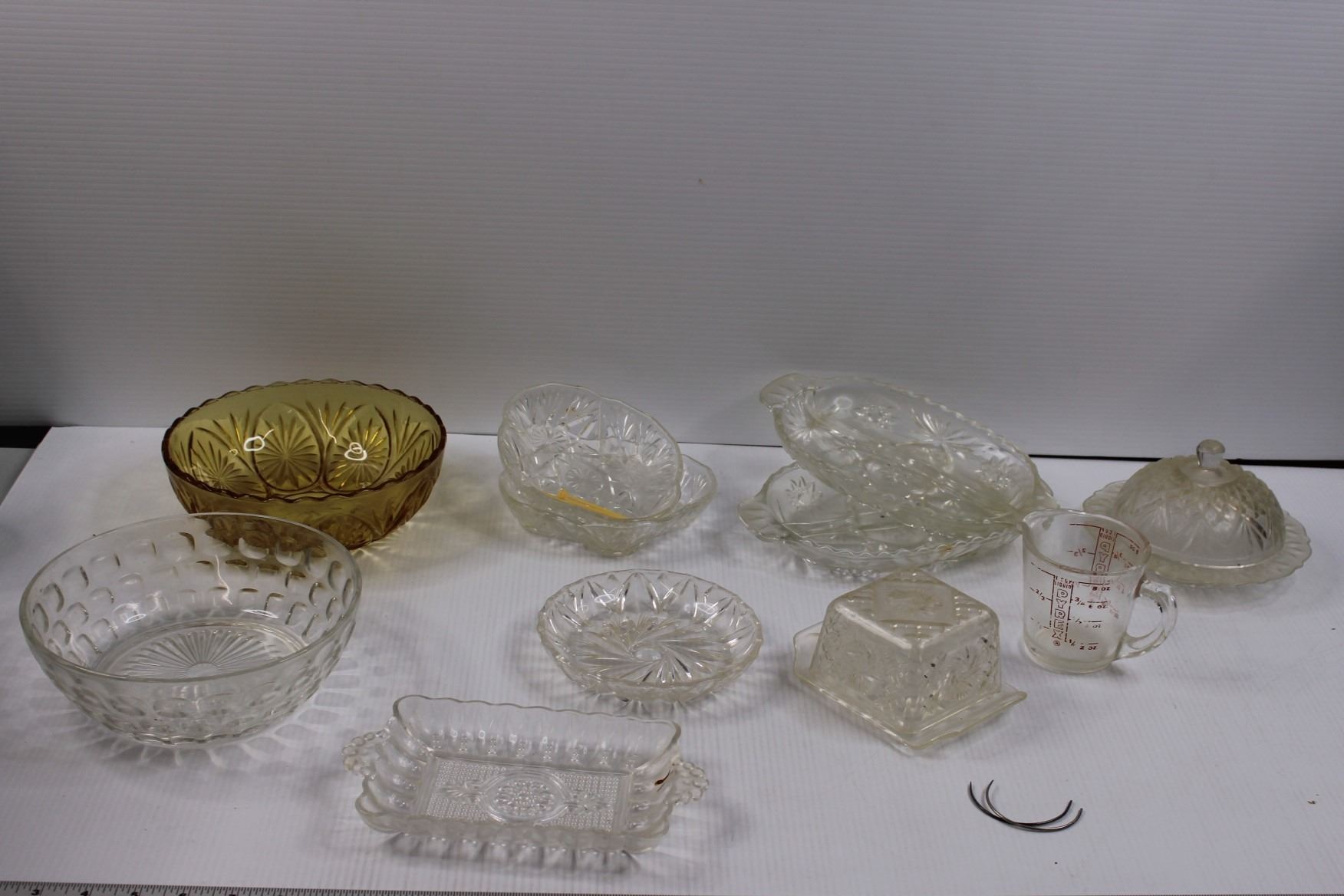 Glassware - Bowls, Butter Dishes, Pickle Platters, Candy Dish, Plastic Butter Dish w/Lid, 1 Cup Pyre