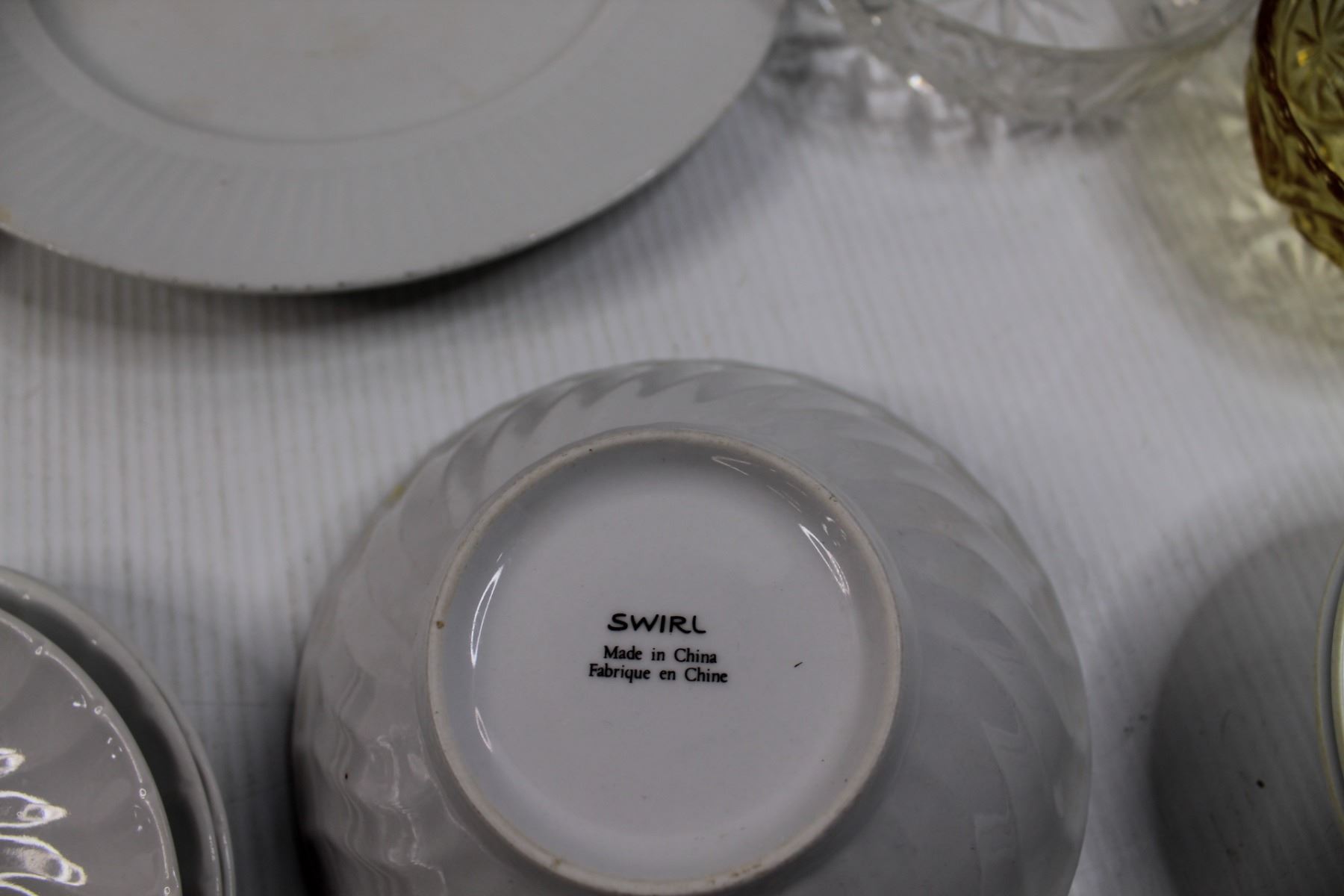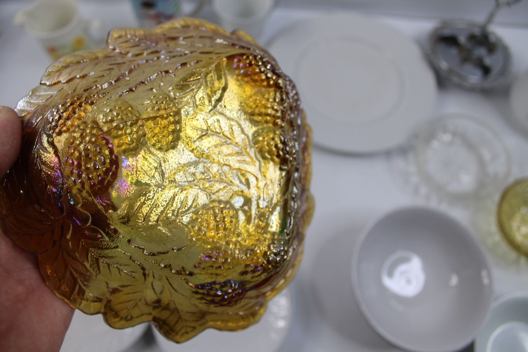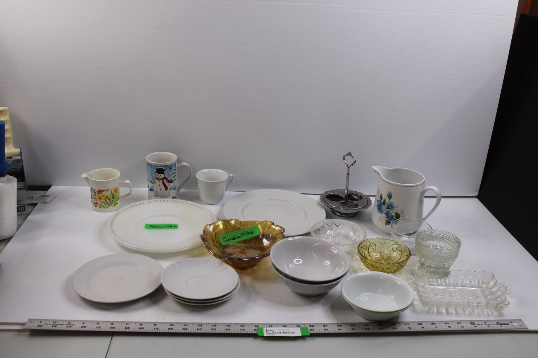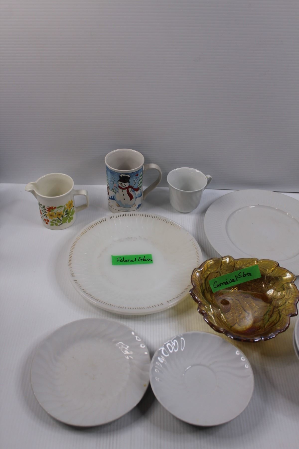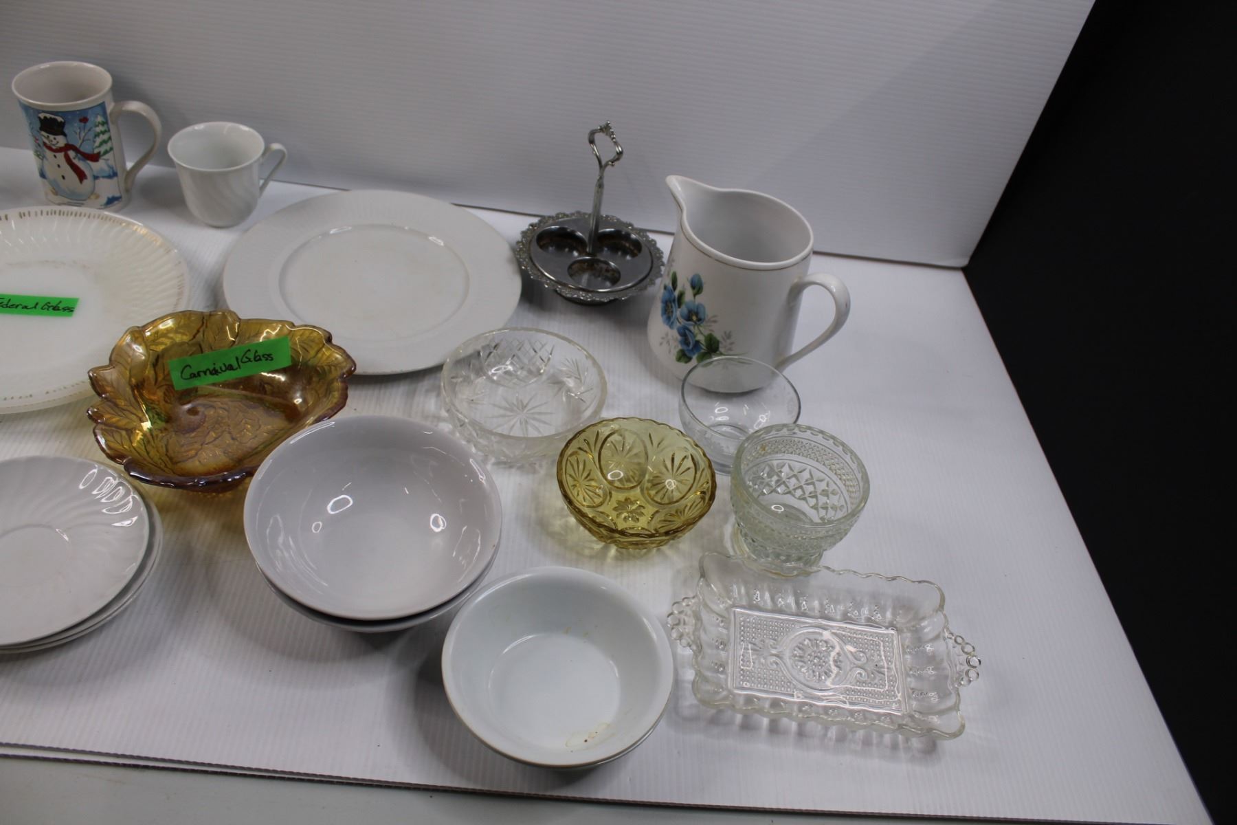 Glassware and Mela-Ware Dishes of Various Manufacturers - (2) Federal Plates, Carnival Glass Dish, B