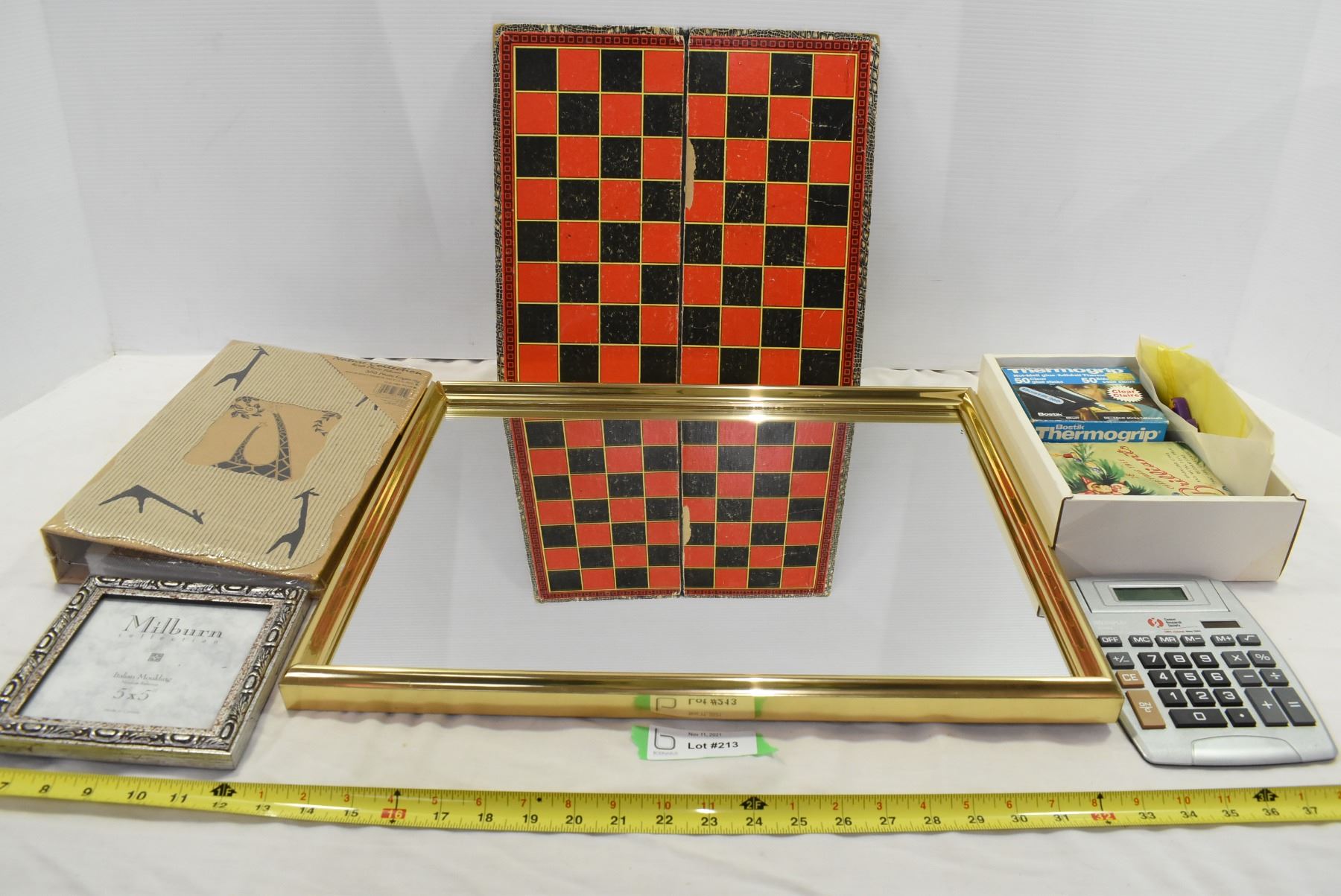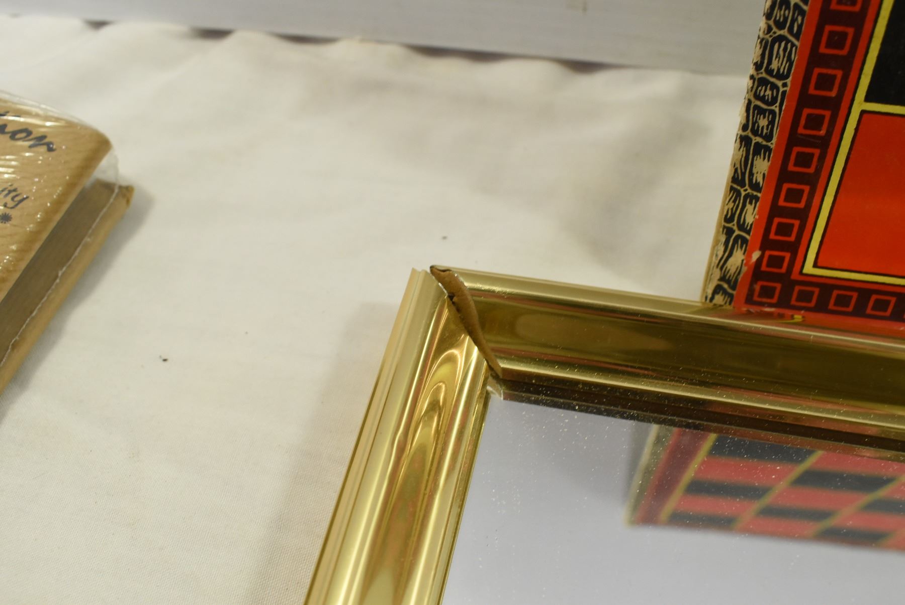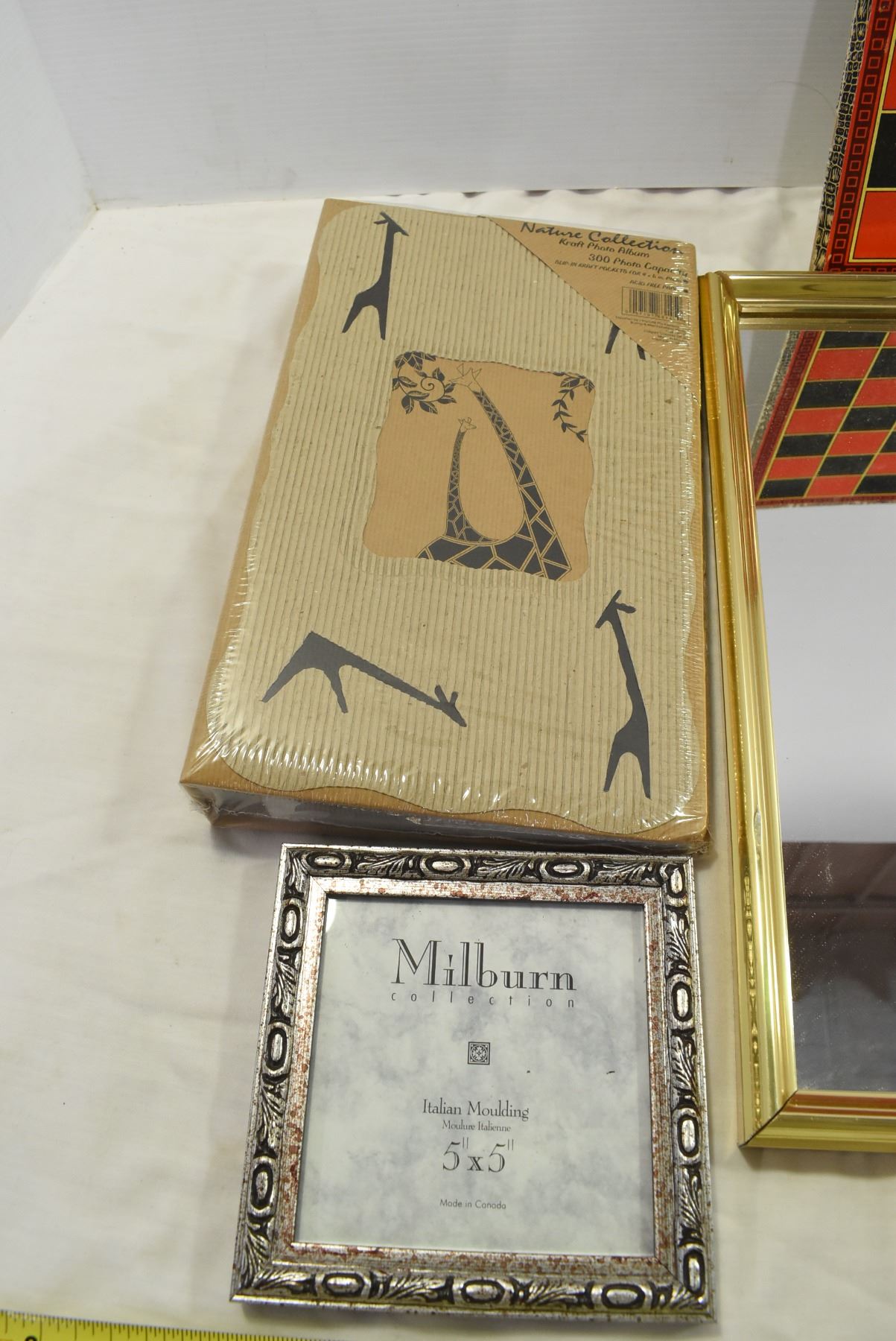 Gold Framed Mirror, Marbles, Cardboard Photo Album, Misc.