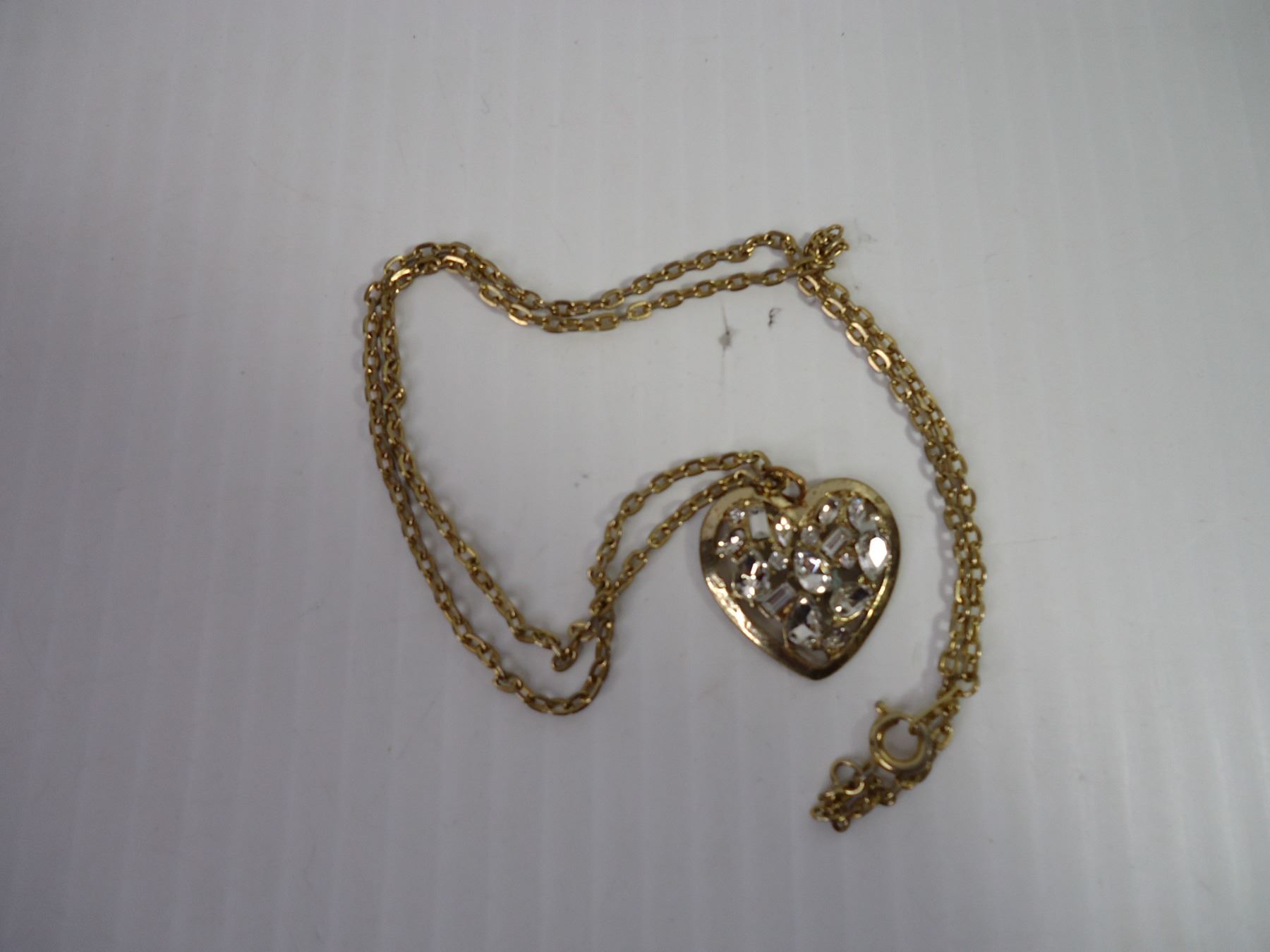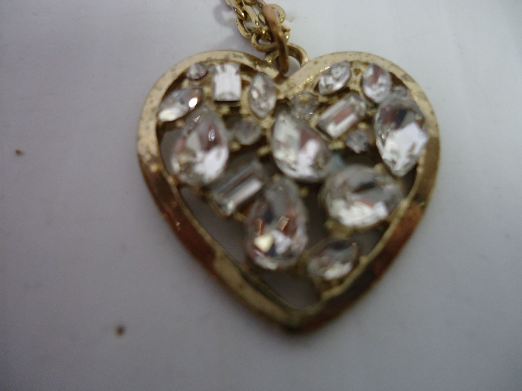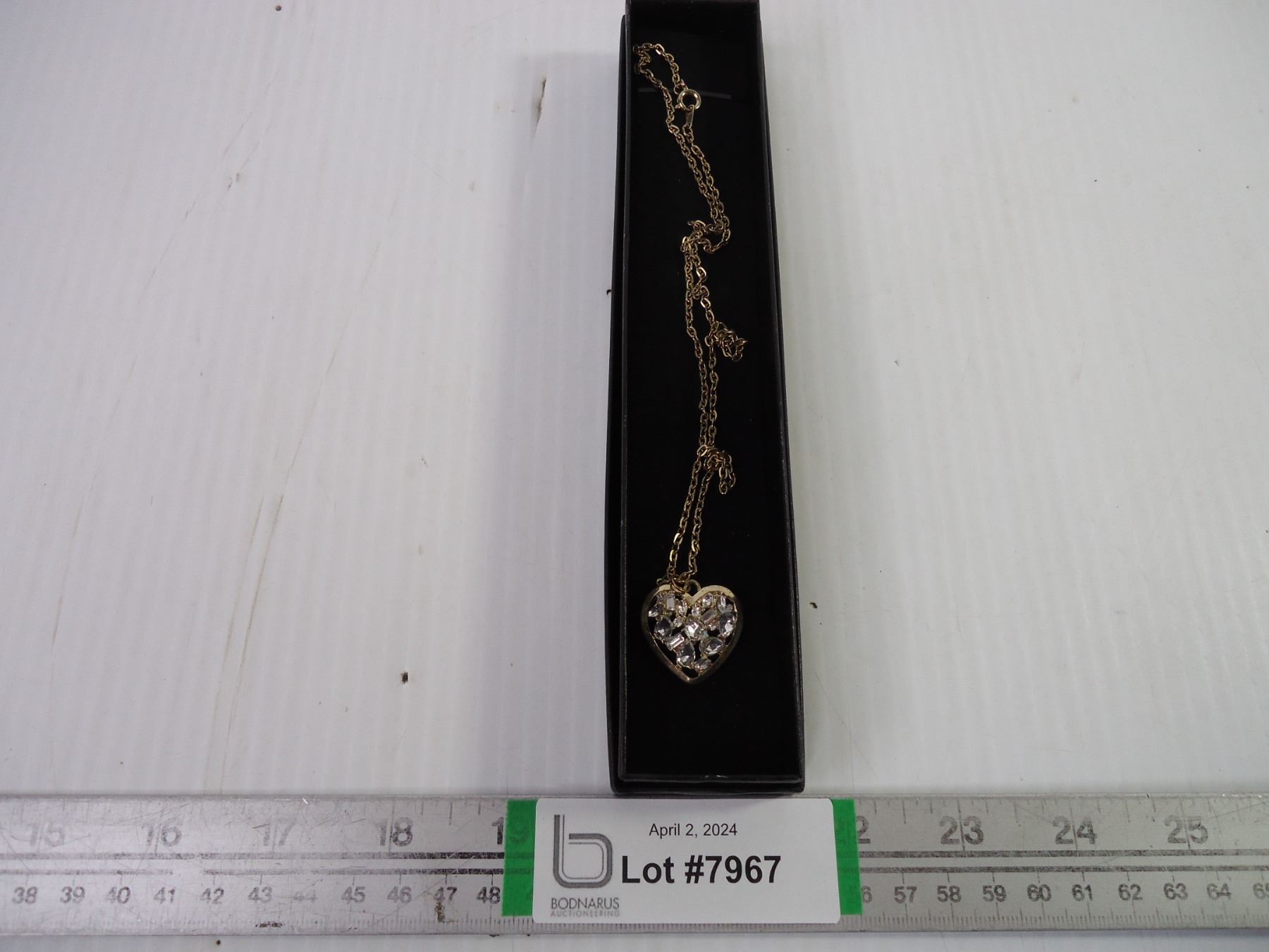 Gold Tone Necklace 20' with Clear Stone Heart Pendant