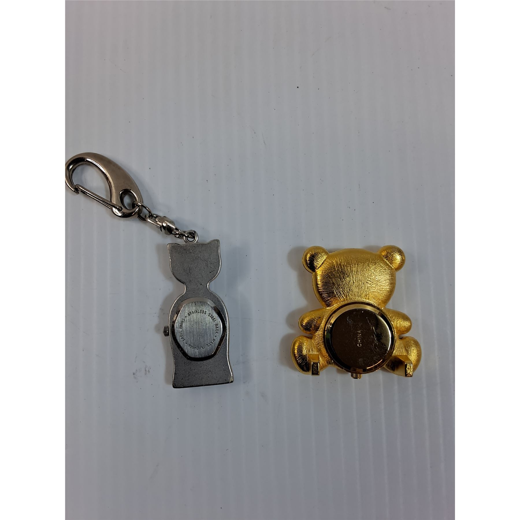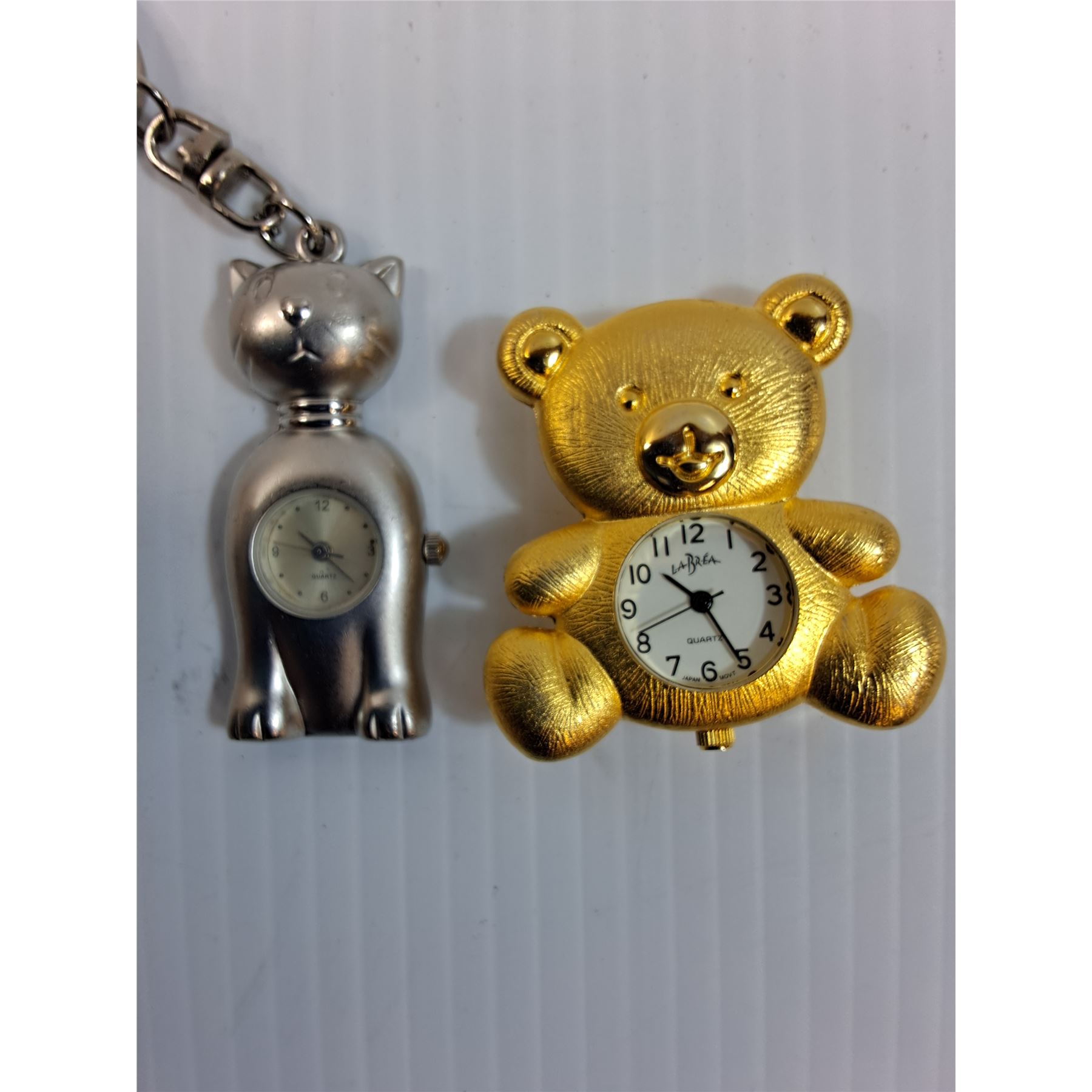 Gold Toned Teddy Bear & Silver Cat Pocket Watches - Working