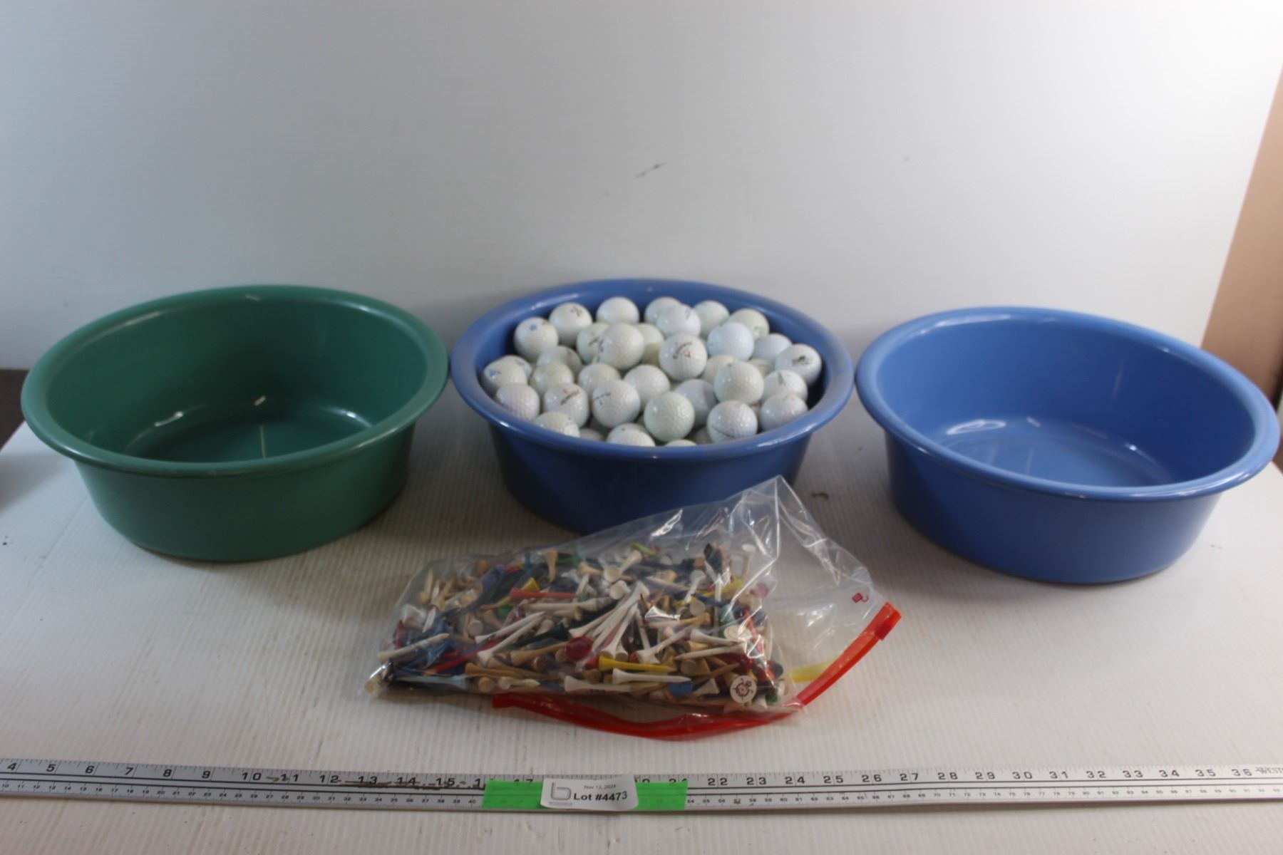 Golf Balls, (3) Plastic Bowls 14'' and Golf Tees