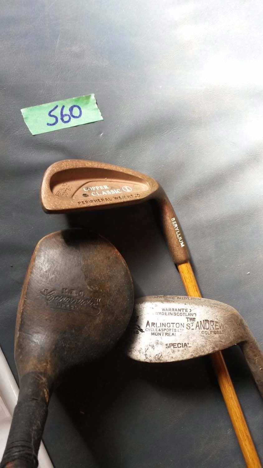 Golf Clubs With Wooden Handles (3) St. Andrews, Copper Classic, Carnoustie Special)