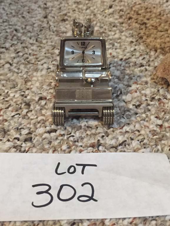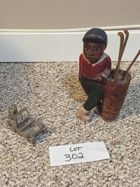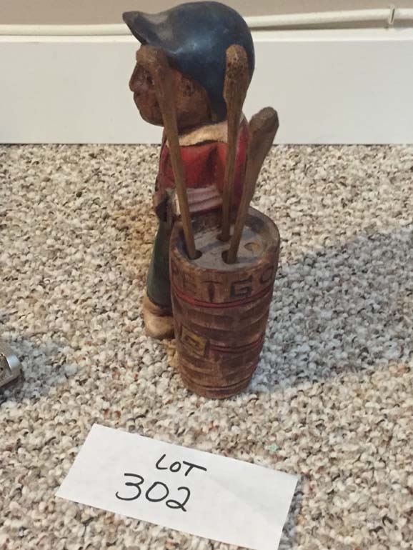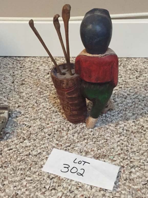 Hand Carved Wooden Golfer, Stainless Golf Cart, Timex Clock