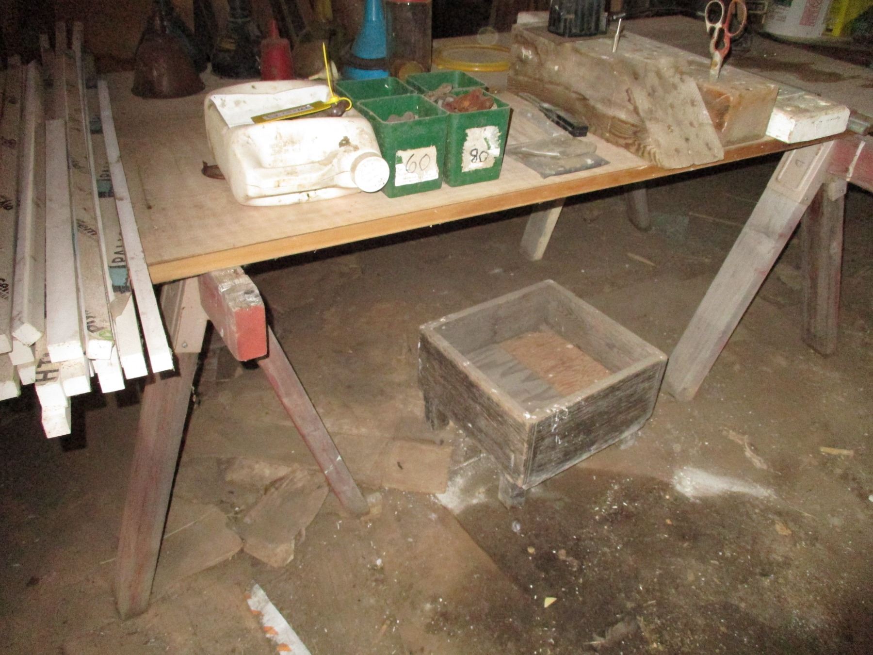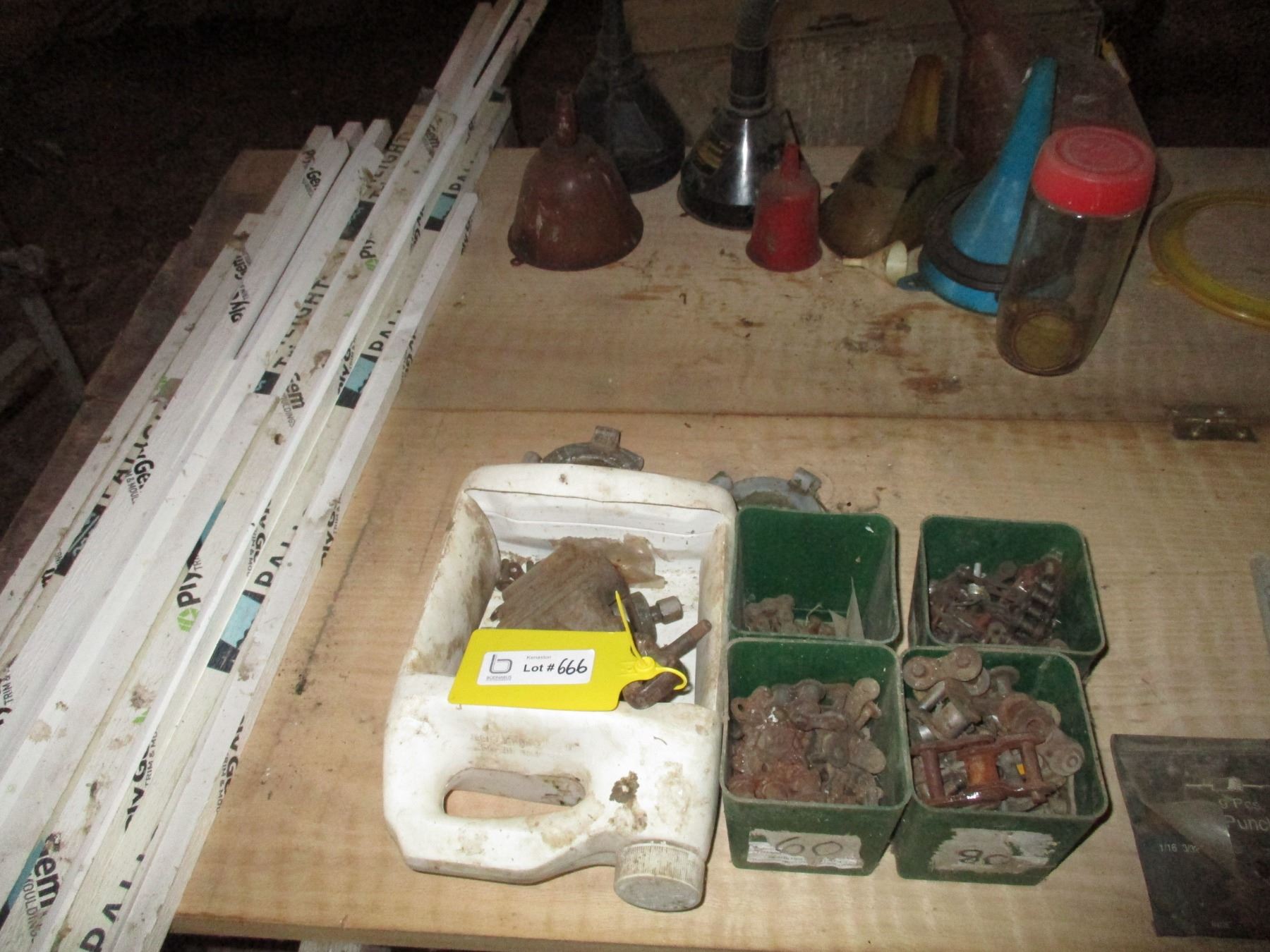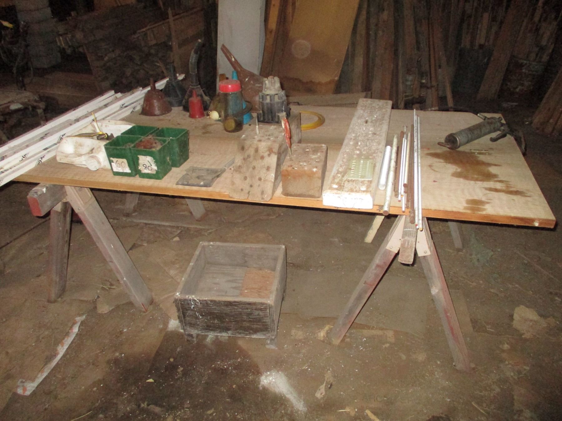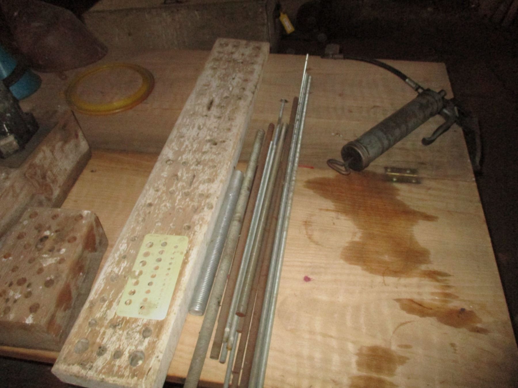 Grease Gun, Tool Holders, Threaded Rod, Saw Horses, Plastic Funnels, Misc.