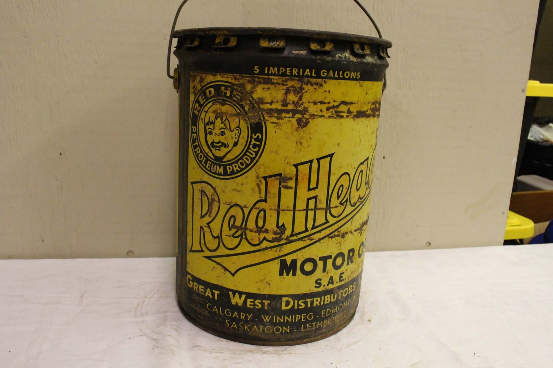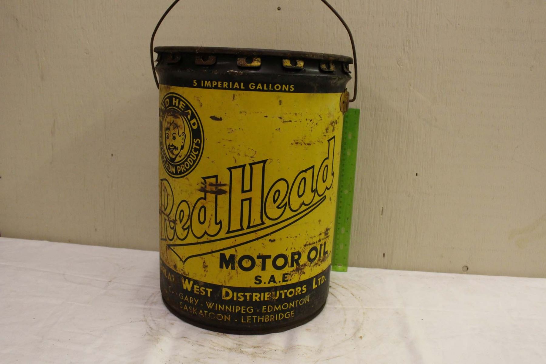 Great West Distributors Ltd. Red Head Motor Oil Pail (5 Gallons)(Emptied)