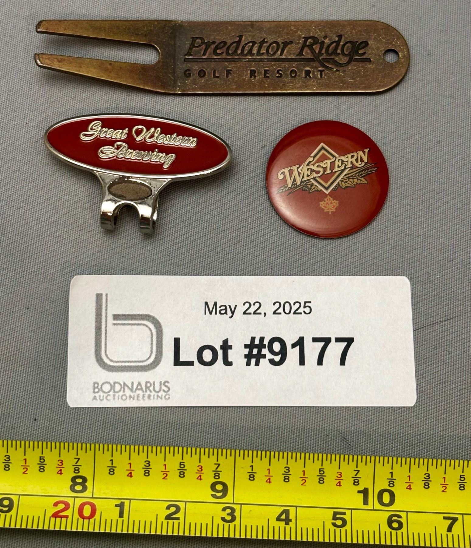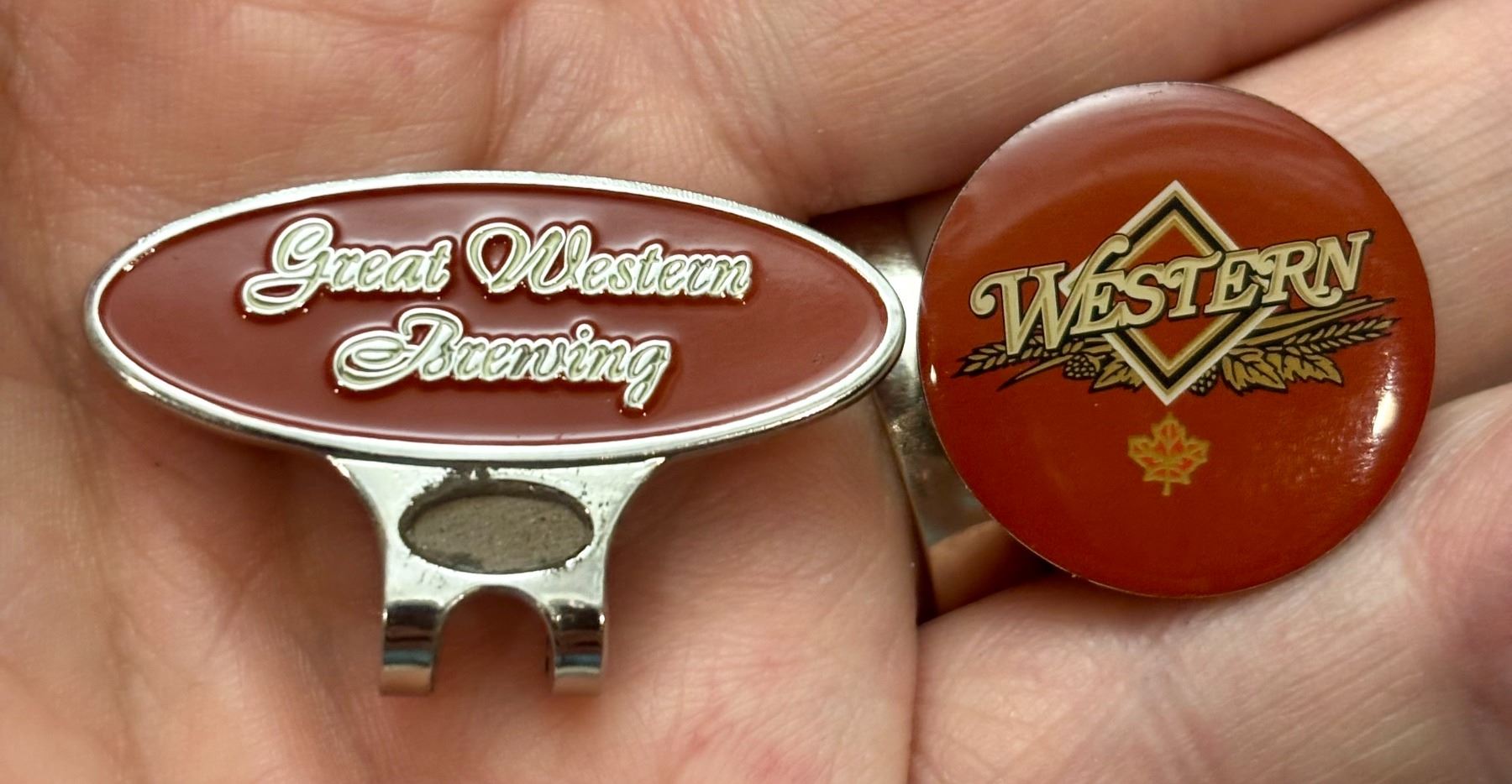 Great Western Brewing Vintage Magnetic Golf Cap Clip & Ball Marker & Brass Divot Repair Tool