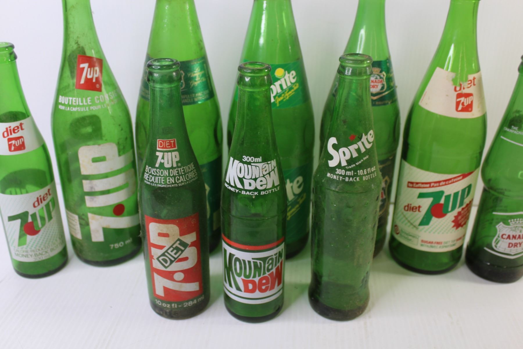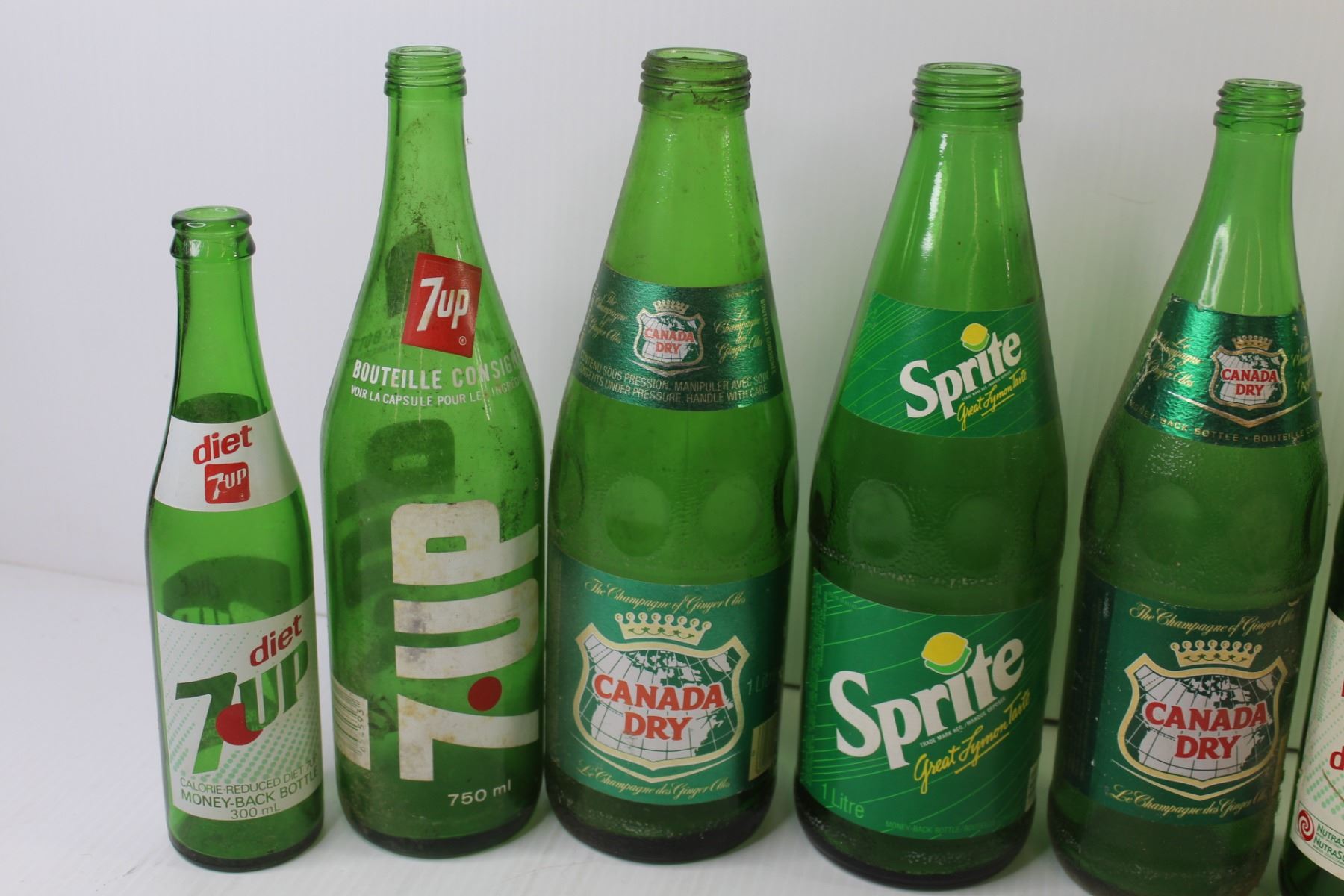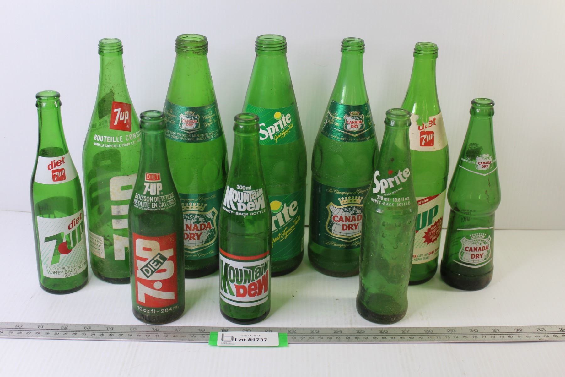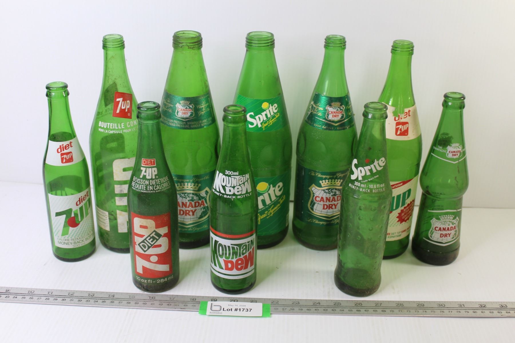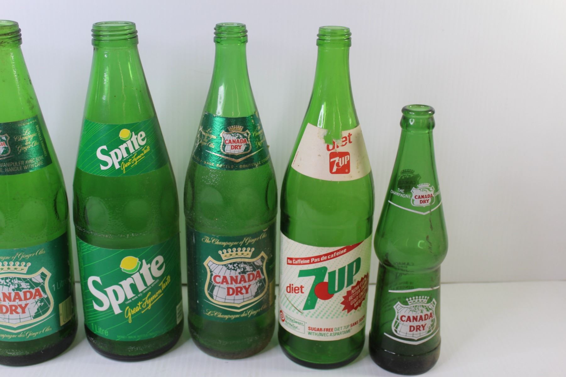 Green Glass Soda Bottles - Sprite - 7up - Canada Dry - Mountain Dew