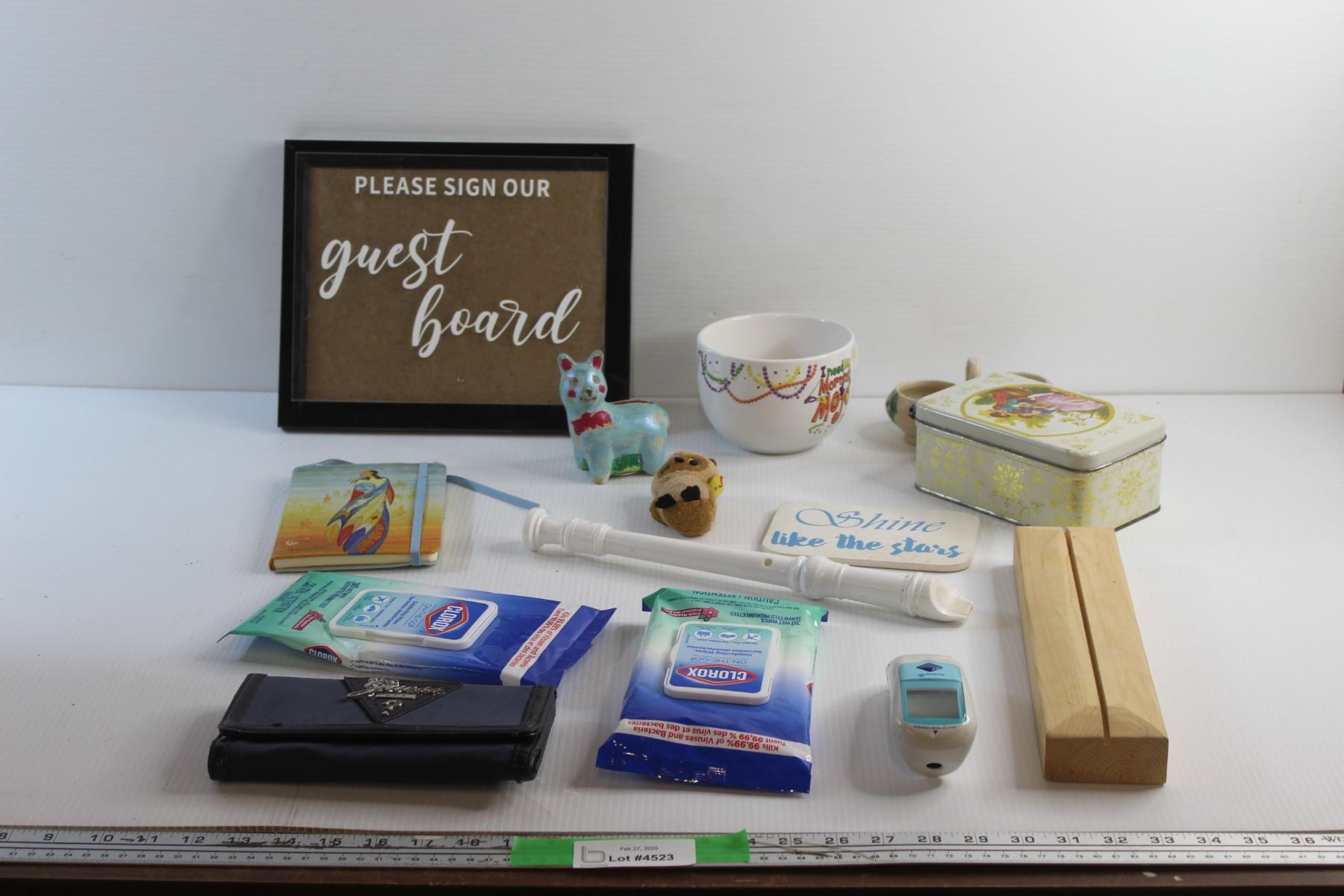 Guess Clutch Bag, Flute, Ceramic Mug, Photo Frame 11'' x 9 1/2'', Coin Bank, Plush Toy and Misc