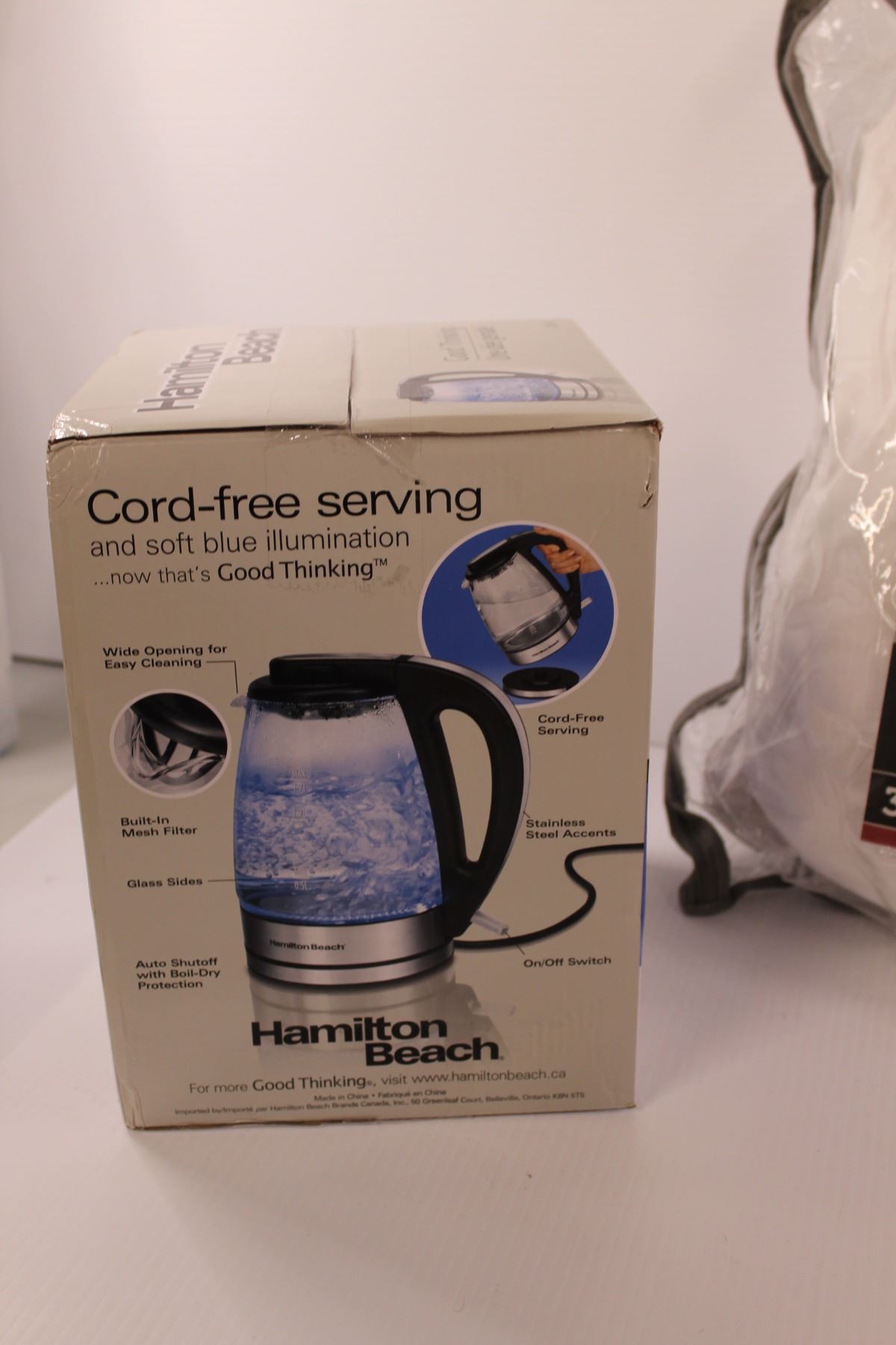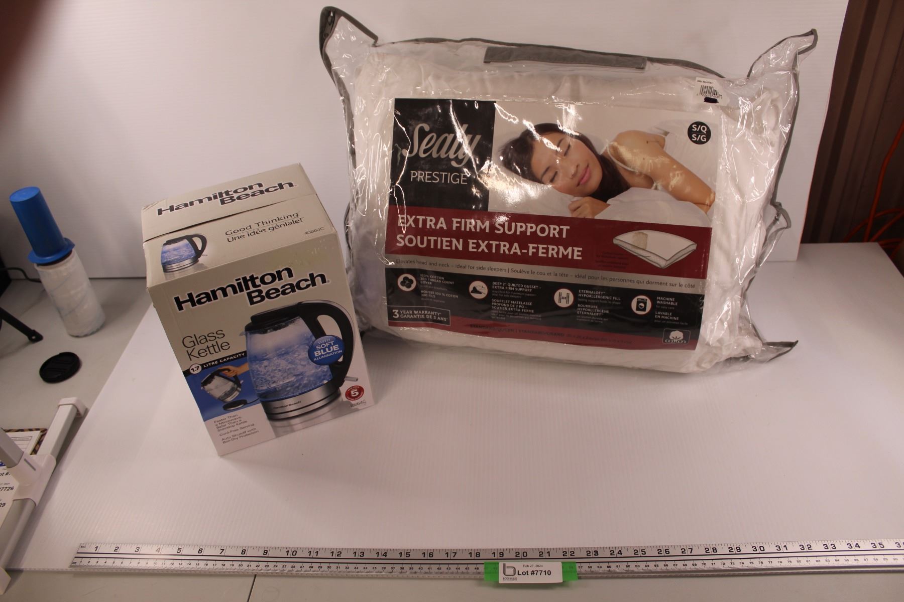 Hamilton Beach Glass Kettle (New in Box), Sealy Prestige Extra Firm Pillow (Standard Queen - New in Package)