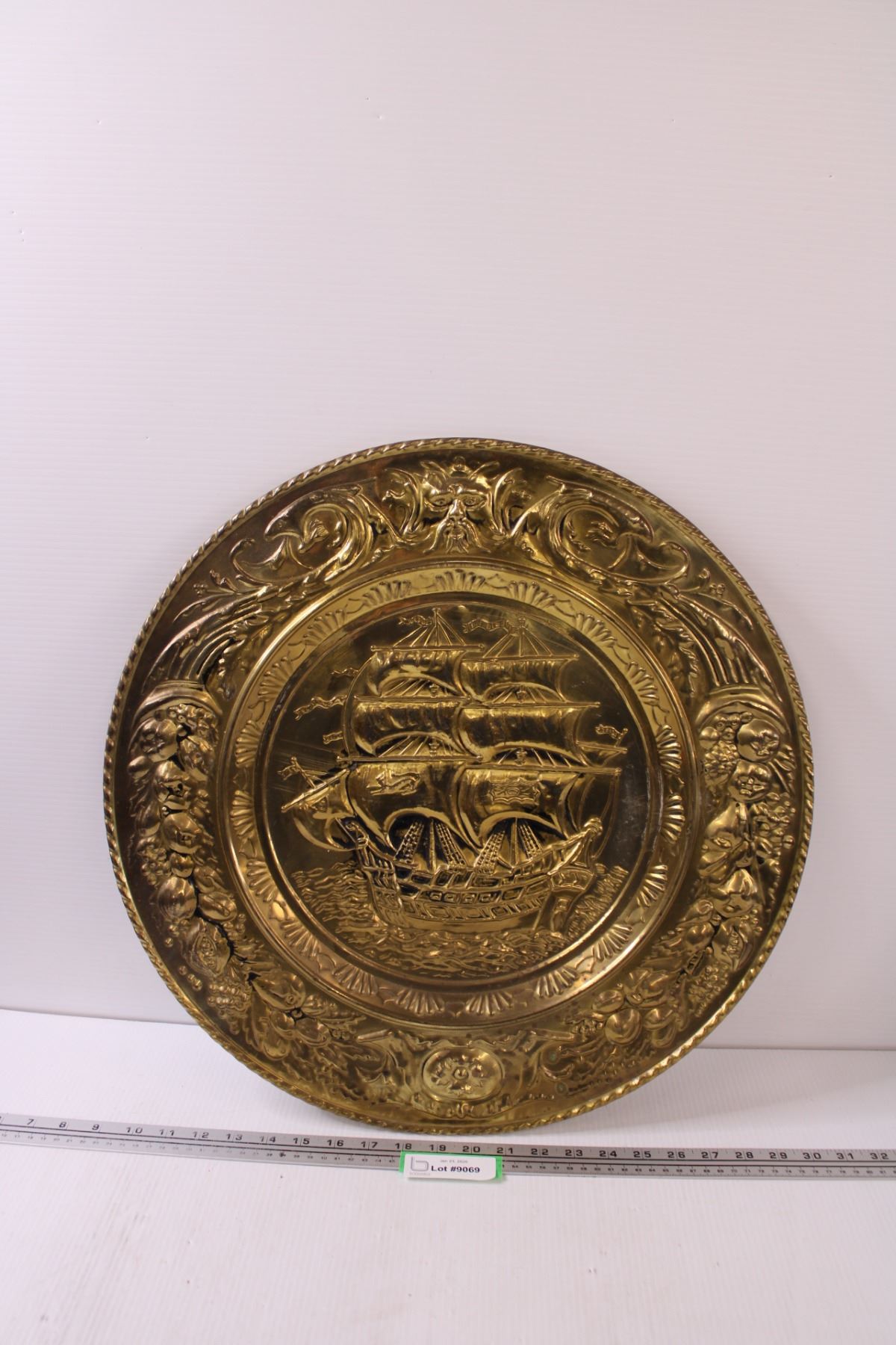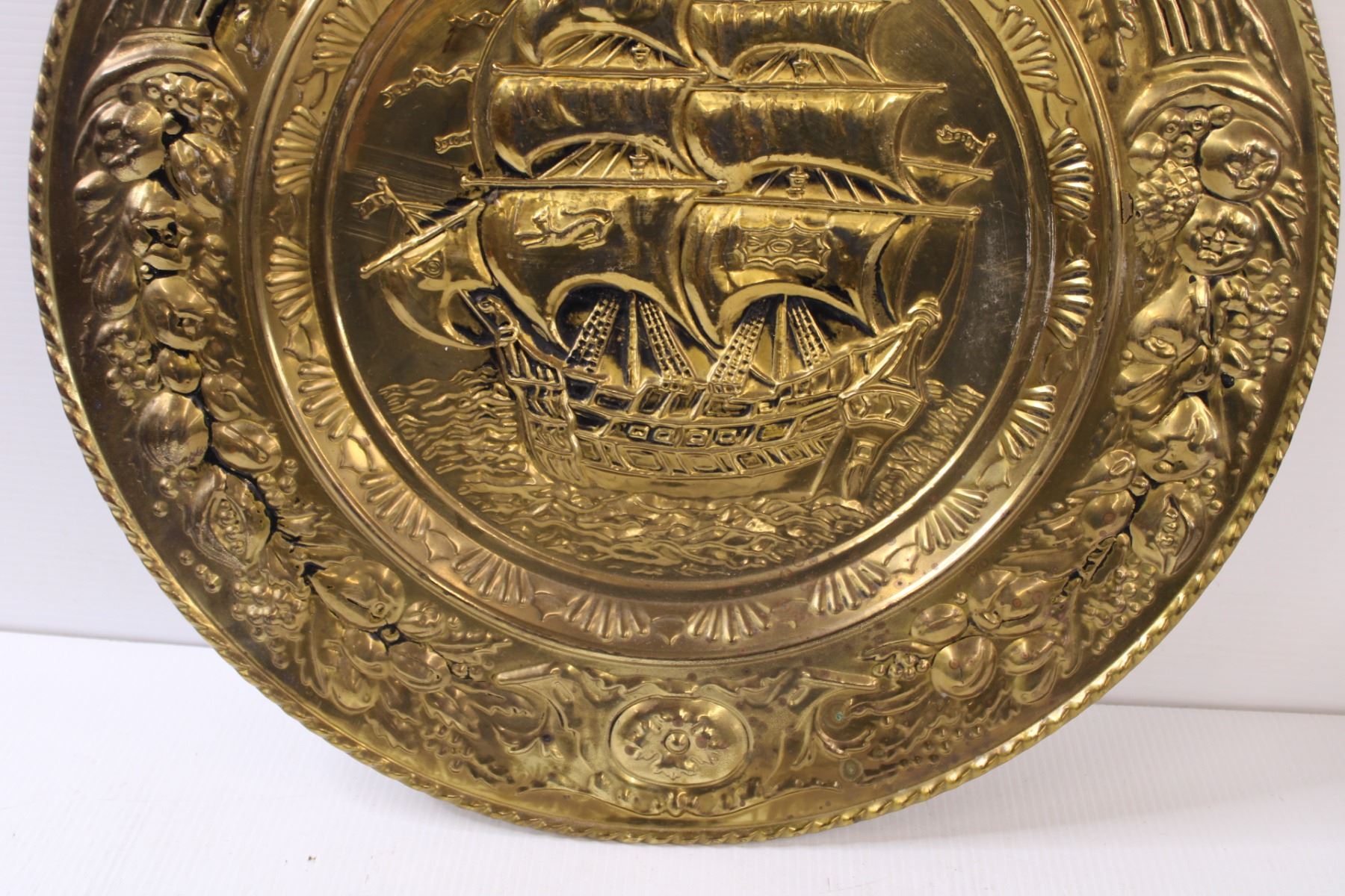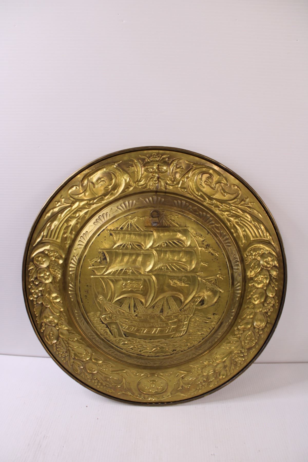 Hammered Metal Ship Art Wall Plate - 20.5" Diameter