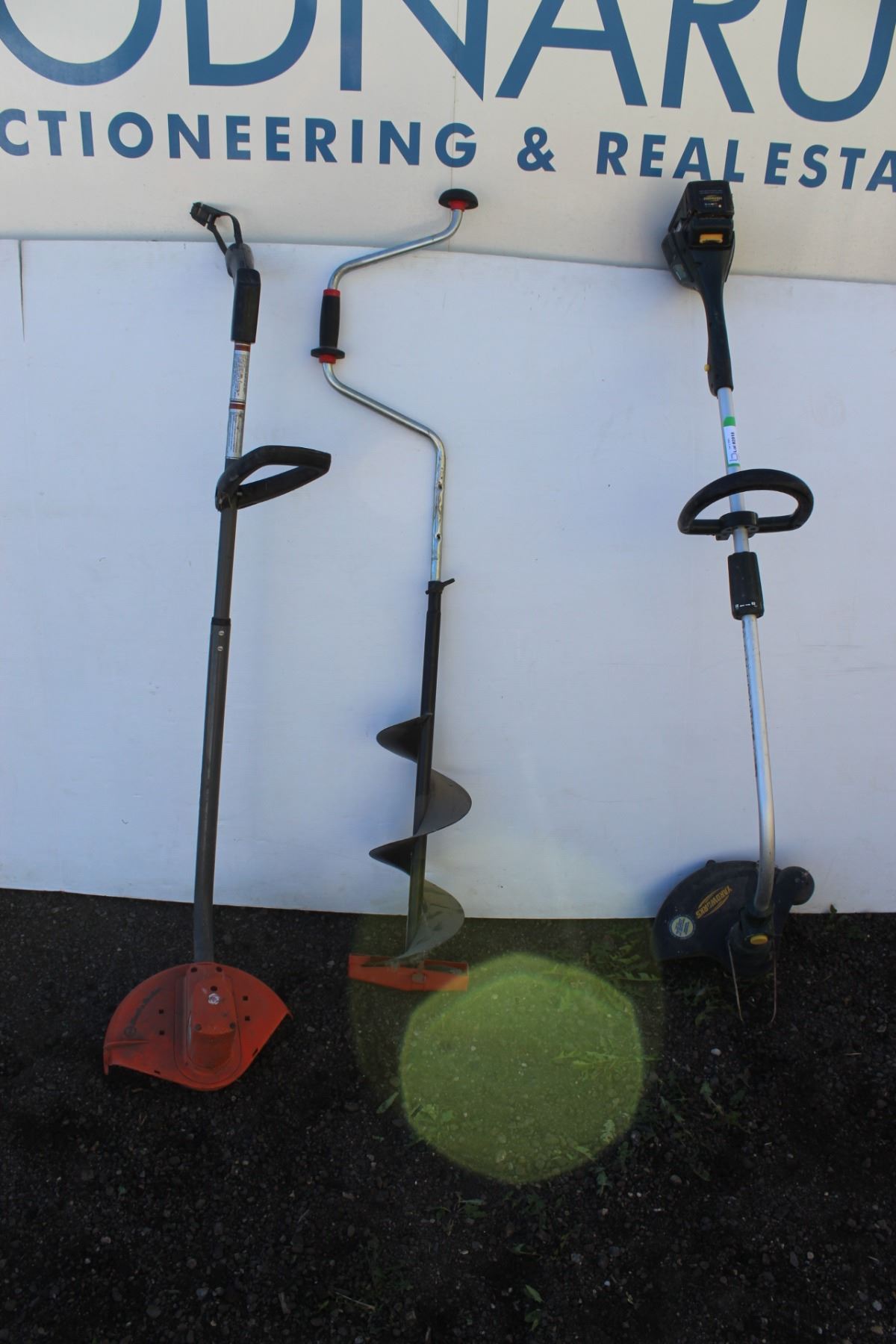 ** Hand Cranking Ice Fishing Auger, Yardworks Battery Operated Whipper Snipper (Works, No Charger),