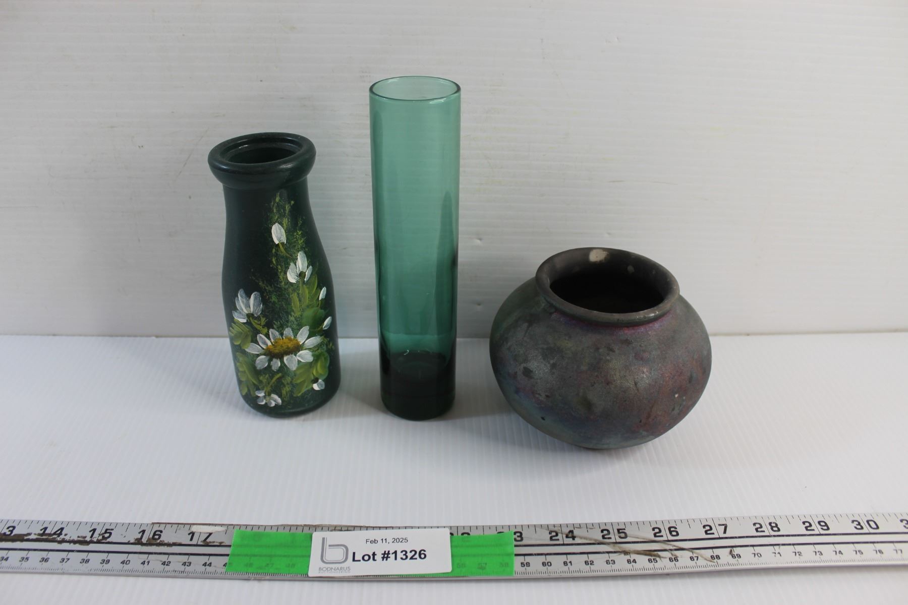Hand Painted Ceramic Vase, Emerald Glass Vase and Ceramic Flower Vase