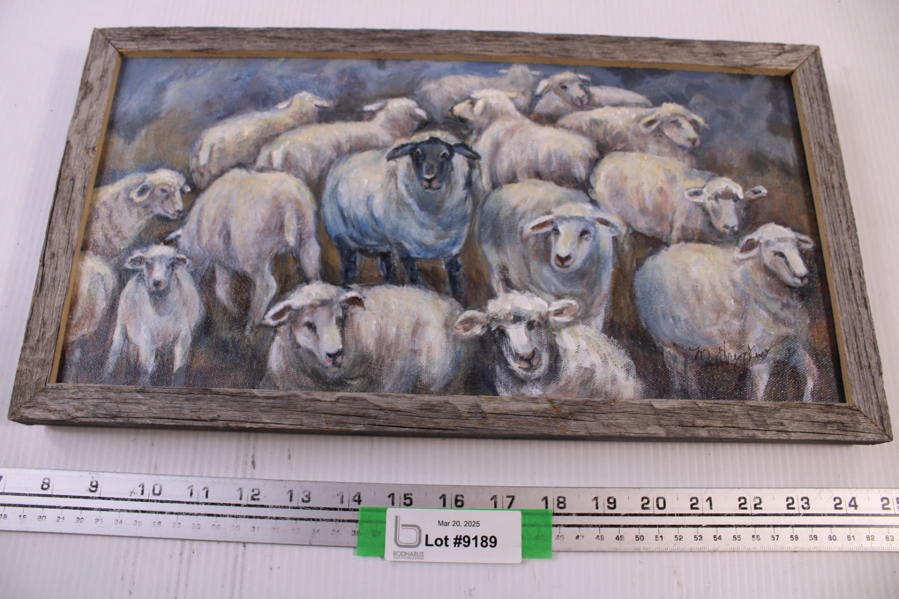 Hand Painted Sheep Wall Art by M. Hrynkiw 2018 (17x9x1")