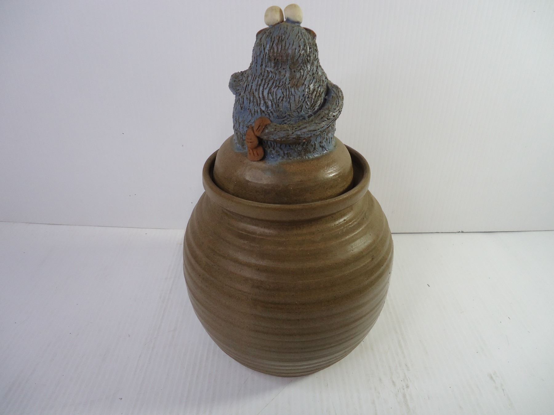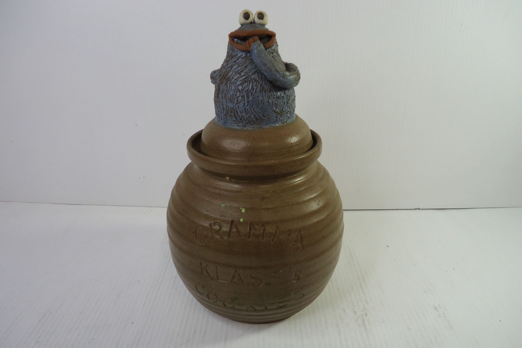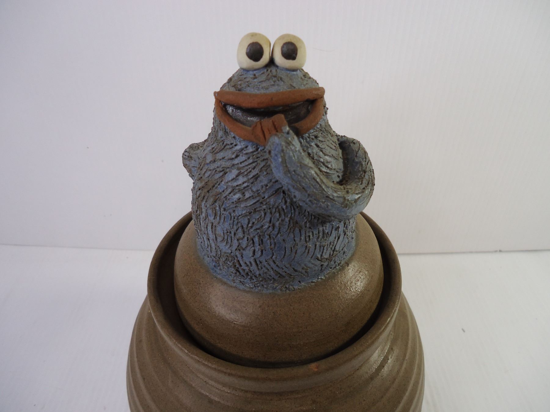 Handmade Stoneware Cookie Monster Cookie Jar