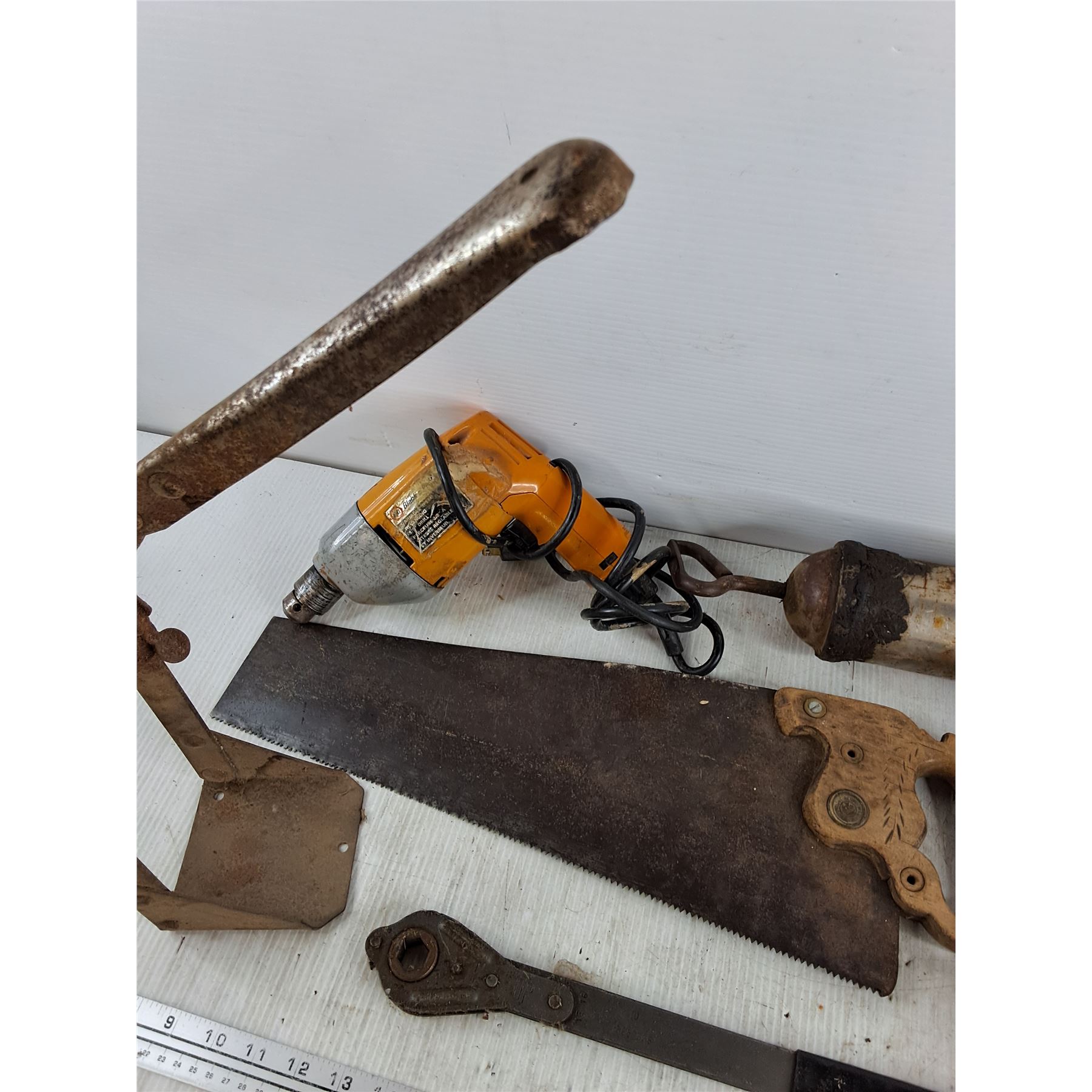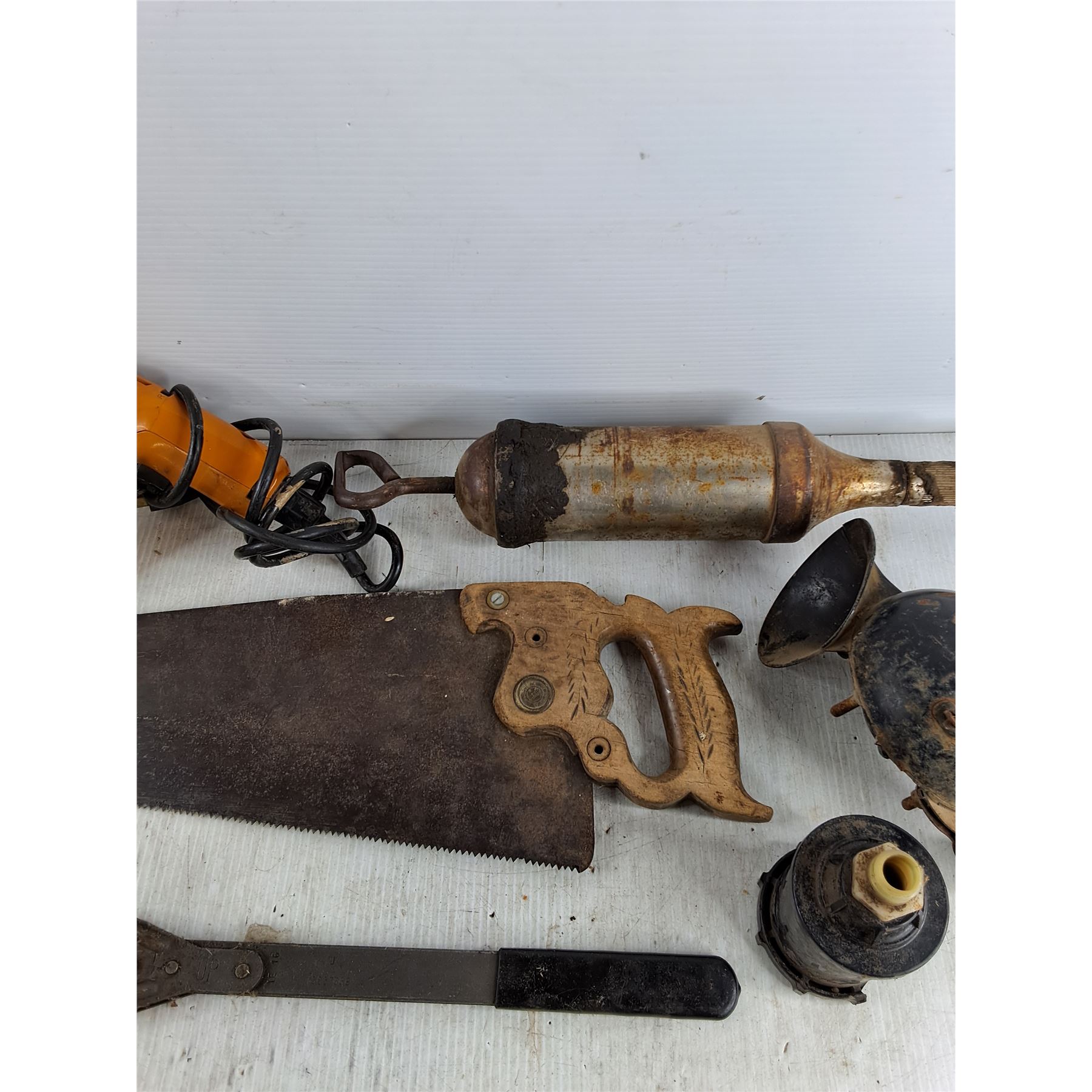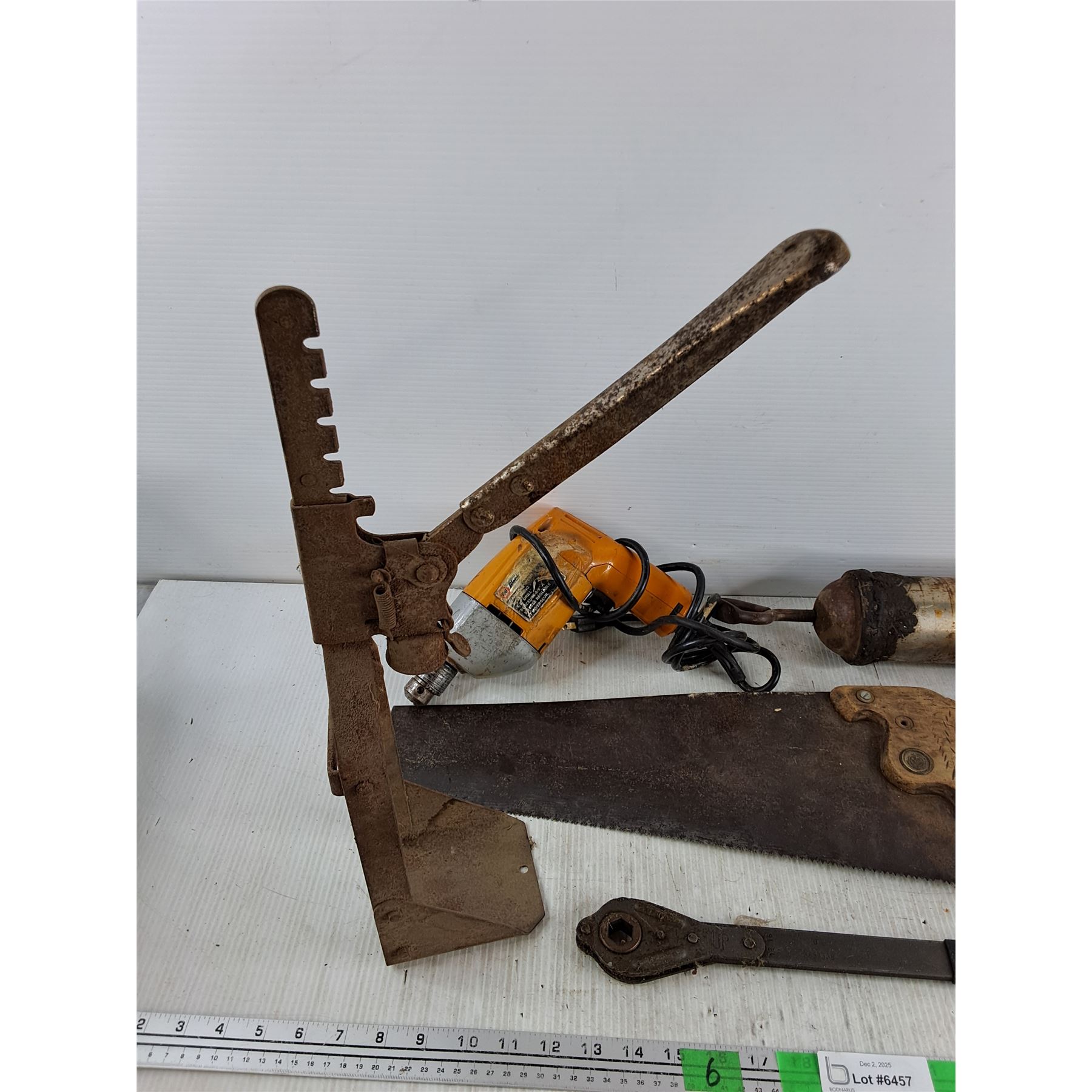 Handsaw, Black & Decker Drill - Powers On, As Is, Bottle Capper, Vintage Horn, Grease Gun, Misc