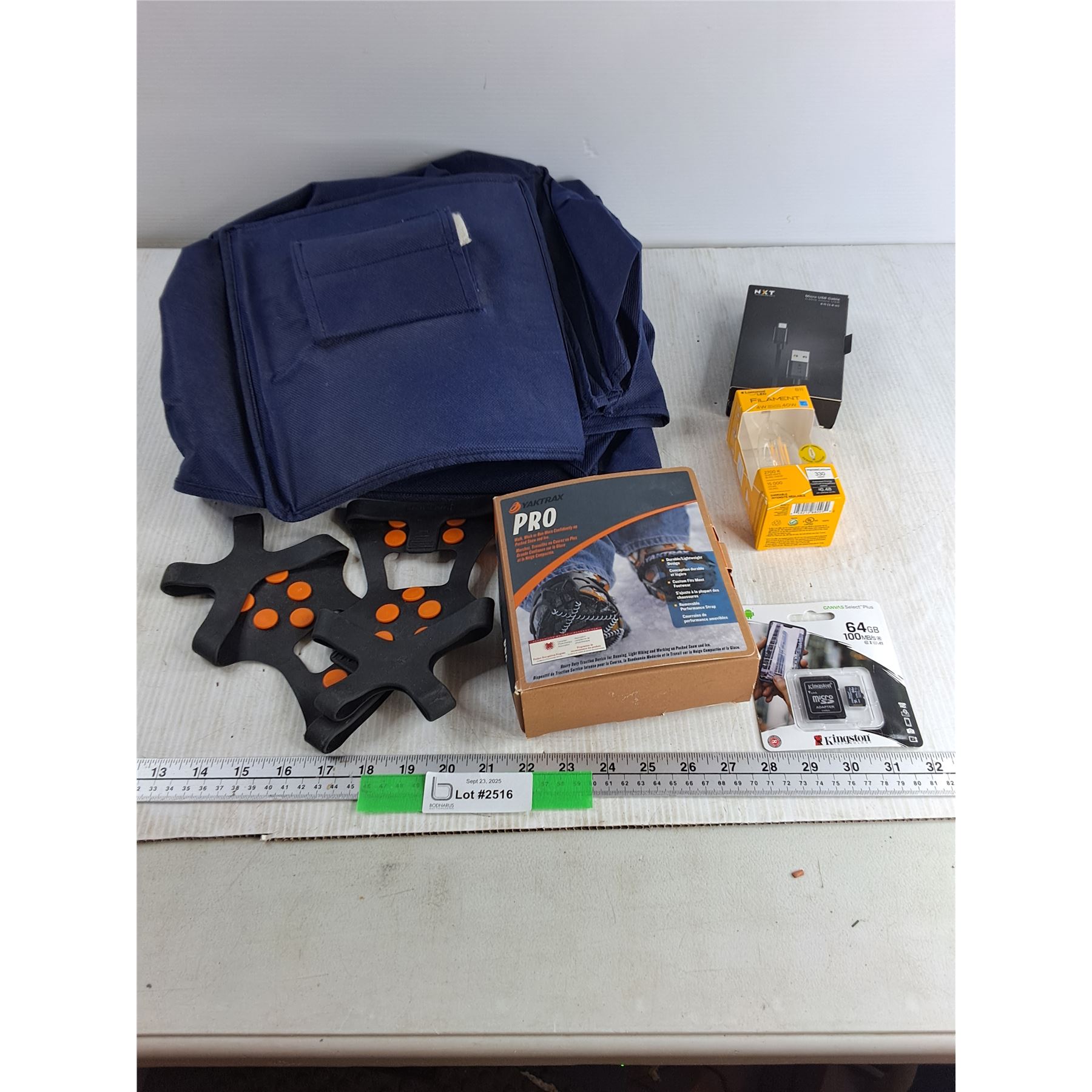 Hanging Storage Shelf, Ice Grippers, SD Card, NIB, Misc