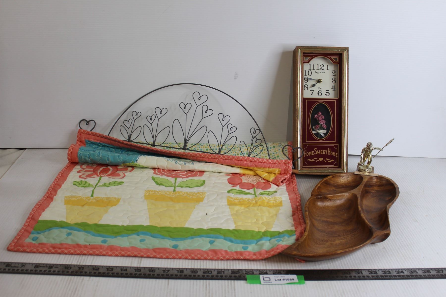 Hanging Wall Quilt, Wooden Clock, Wooden Serving Tray